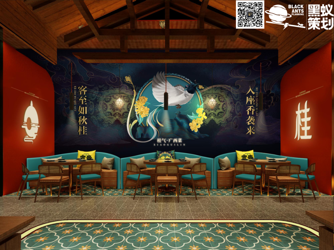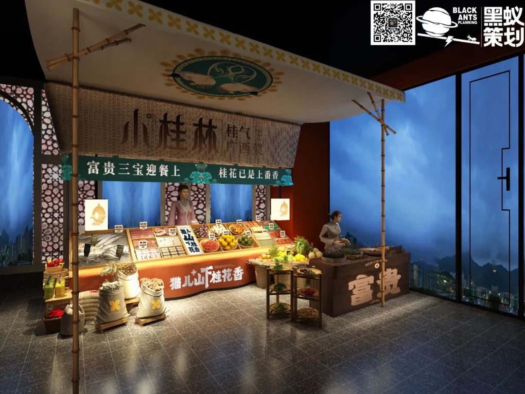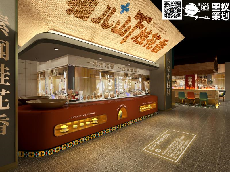 产品诉求:【打造产品特色形成品牌特色:以广西桂林的市花——桂花作为特色元素,以桂花入菜,推出“桂气·广西菜”的定位,结合猫儿山的天然食材,打造产品差异性】