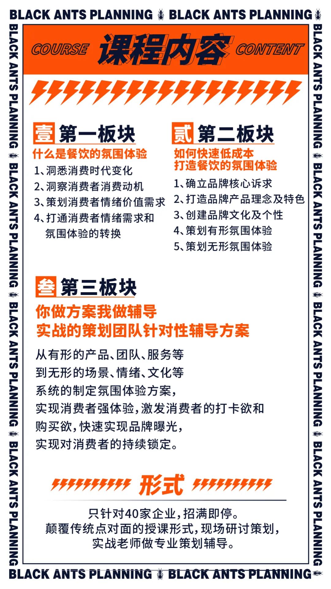 形式:只针对40家企业,招满即停!颠覆传统点对面的授课形式,现场研讨策划,实战老师做专业策划辅导!