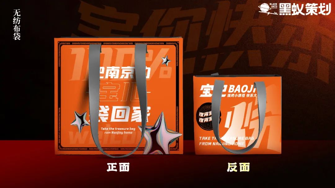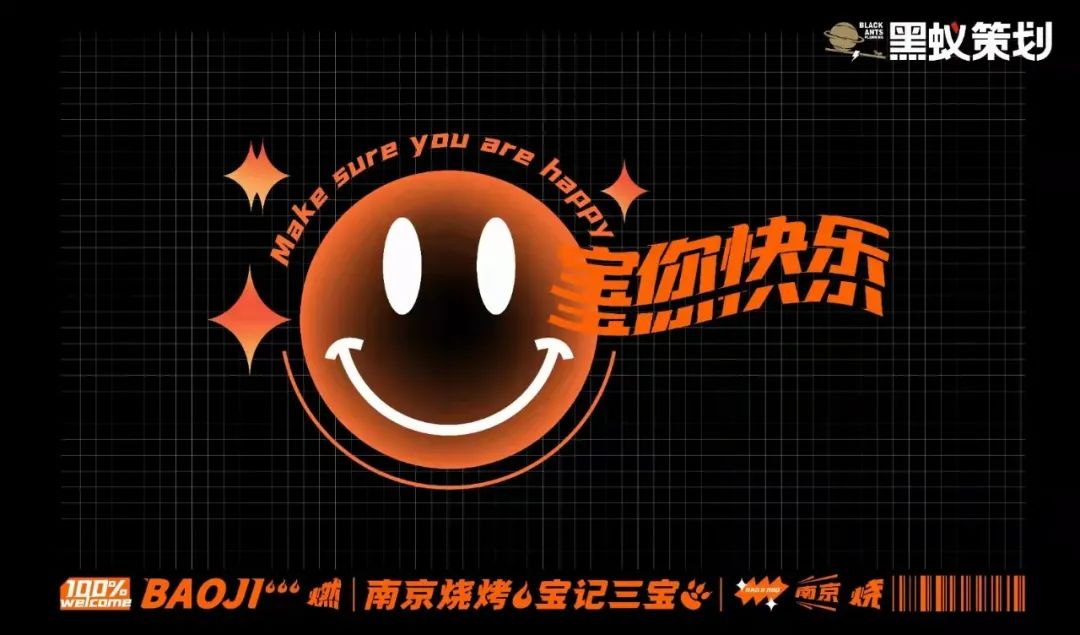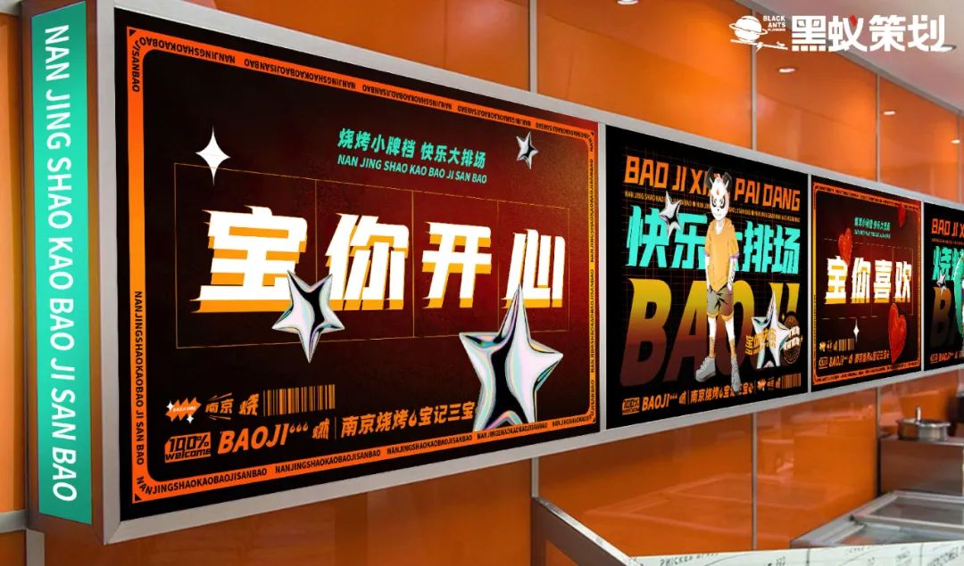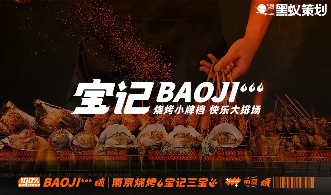 产品诉求:打造产品特色形成品牌特色,将“宝记三宝”与南京烧烤的代表作链接,并推出卤味、烧烤、酒水、小吃贯穿的产品线,丰富的产品与对应的场景使消费者形成沉浸式吃喝玩乐的体验