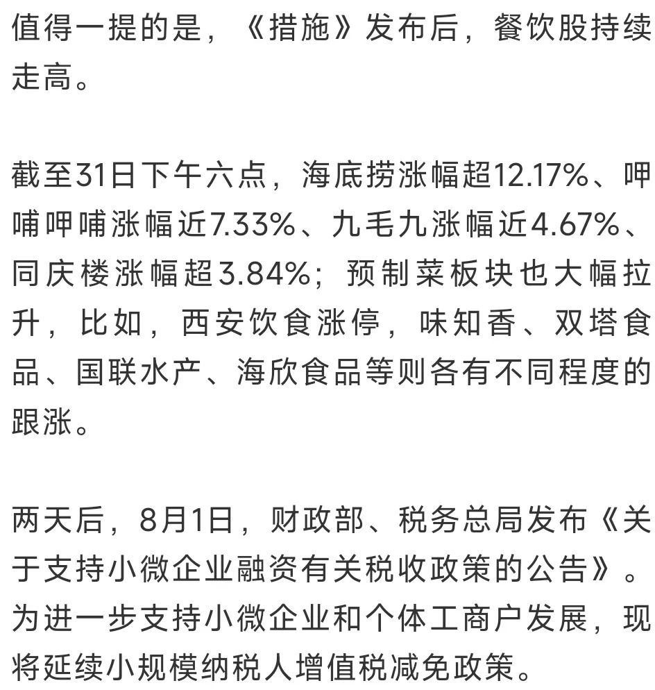 几天之内,国家连续“出手”,发布的政策均利好餐饮行业。