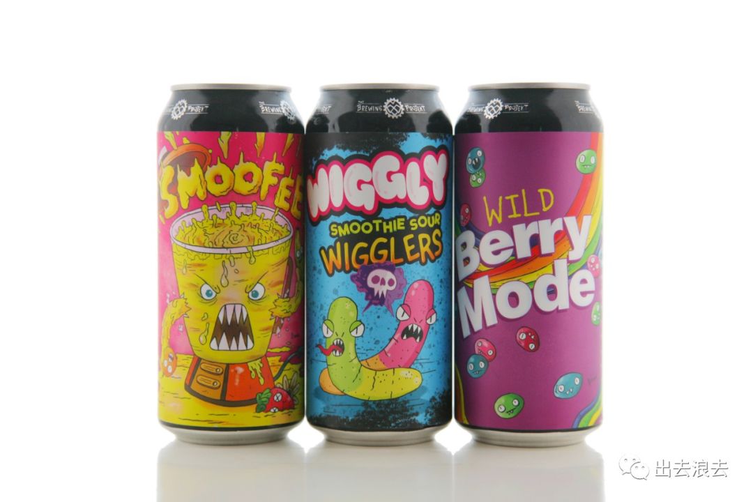 简述:这款酿造计划的SMOOFEE酸啤酒有很多版本,我买到的这个是以草莓、橘子、香蕉为主材料的一款,酒精度不算太高,罐体画得很有意思,有点恐怖动画片的感觉,整体是粉色和黄色的,是一杯沸腾的面目可怖的酸啤酒,一手香蕉一手橘子,下面还有奄奄一息的草莓——主材料全部体现在罐上了。原料与辅料:水,大麦麦芽,草莓汁,橘子汁,香蕉汁,香荚兰,啤酒花,酵母生产企业在华注册编号:CUSA23012202230200颜色:偏棕的枣红色,像淡一些的枣泥、或者说东北冻柿子里面瓤子略深的颜色,很浑浊香气:水果酸甜味特别明显,主要感觉是类似山楂糕的那种酸甜味味道:入口十分酸,类似于直接吃山楂的酸,下咽后有一点苦;喝到最后就是很浓重的果泥感;后半罐酸度有所缓解,甜味慢慢增强,类似成品山楂糕的酸甜味;草莓和橘子的味道没有喝出来,酸味感觉和柠檬也不搭边简述:这款啤酒刚看到时我想起来以前韩国的动画片“两只虫子”,颜色都差不多,只不过这两只虫子比较瘦也比较凶。Wiggly这个词有摇摆的意思,也有蠕动的意思,我估计翻译成蠕动啤酒就不好听了,而且很“恶心”。原料与辅料:水,大麦麦芽,菠萝汁,柠檬汁,番石榴汁,覆盆子汁,酸橙汁,柑橘汁,啤酒花,酵母生产企业在华注册编号:CUSA23012202230200香气:有蓝莓、树莓的味道,树莓味道很明显,盖过了其他很多的味道,导致闻起来像福佳的果味啤酒一样味道:入口酸甜,不是十分酸,而且酸味还转瞬即逝;收口时有一些苦味;没喝出来菠萝的味道简述:这一款的包装竟然看起来特别正常,整体就是葡萄紫色,最显眼的就是彩虹,字体也用的是一种印刷体,感觉完全不能融入到图案中去。仔细看那些小糖豆才发现,还是那种风格。这款啤酒酒精度很高,但是竟然不罐这款“帝国酸艾尔”。对美国的酸啤酒,我需要学习的地方太多了。原料与辅料:水,大麦麦芽,覆盆子汁,黑莓汁,草莓汁,樱桃汁,海盐,啤酒花,酵母生产企业在华注册编号:CUSA23012202230200香气:可以闻到树莓味,但是其他味道也特别浓,几乎把树莓味盖住;有碳酸樱桃汽水的那种樱桃味,还有苦杏仁味味道:入口十分算,可以感受到樱桃汽水味和苦杏仁味,也能隐约感受到树莓味道,但是由于酸味太厚了,其他的味道我喝不出来了;海盐的咸味我也没喝出来;整体就是十分酸,非常非常的酸