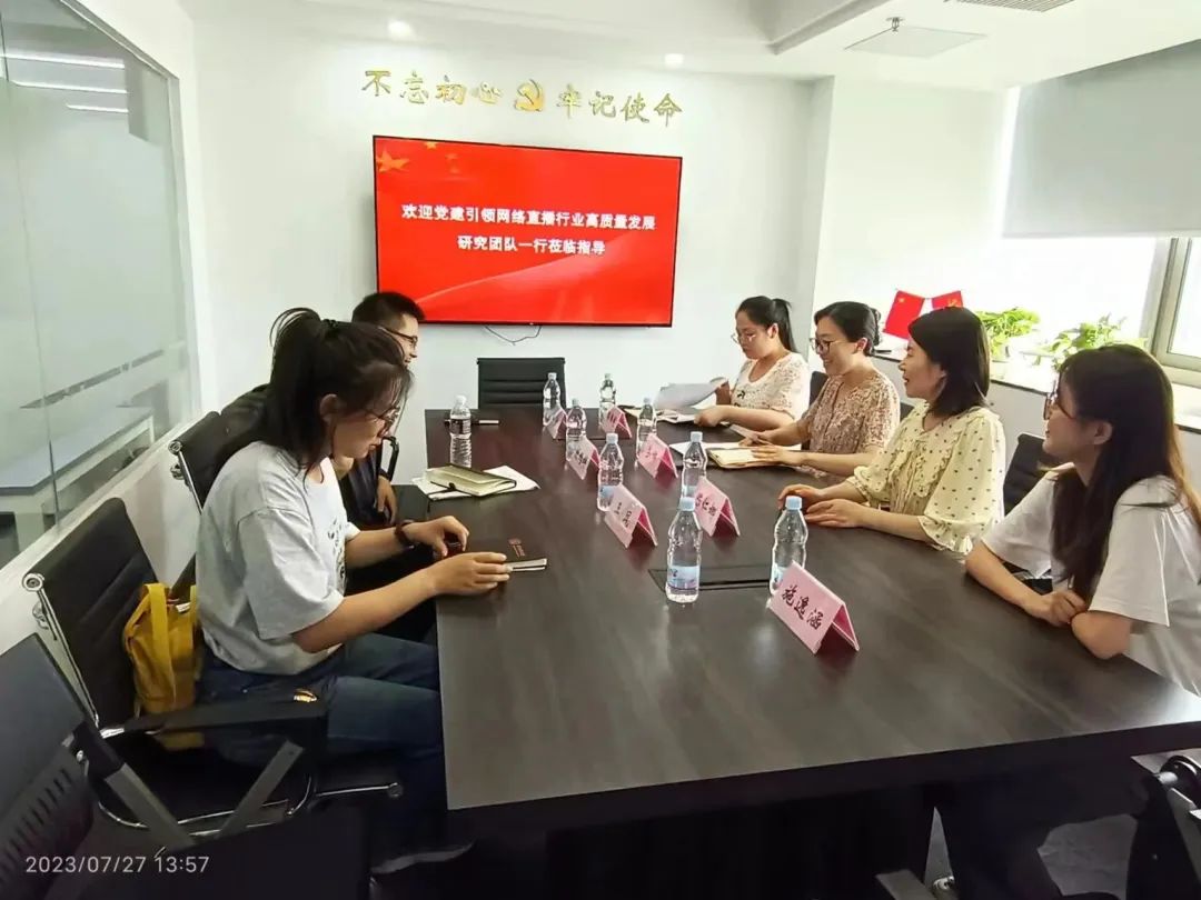 调研伊始,团队一行与无锡市网信办开展座谈会。会上,胡鹏辉老师同网信办领导详细交流了无锡市网络直播行业的发展现状及党建情况,确定了调研的具体方案。之后,团队在无锡市网信办的支持下,先后调研了旺庄街道、无锡市互联网协会等机构的党建情况,从不同类型机构党建实践中切实体会多种类型直播行业的管理流程及党建模式。同时,团队深入与泛娱乐、带货直播等不同类型的直播公司进行调研,以对不同直播类型公司负责人、党员员工、一线主播的访谈及问卷调查为切入点,集中调研直播带货及泛娱乐直播行业,多方面建立党建认知及行业发展的关联网络,为团队探索党建引领行业发展的具体路径提供了新思路与考验。通过团队进一步讨论,胡鹏辉老师借用帕森斯的社会进化论提出了党建引领直播行业高质量发展的何以可能的基本路径。