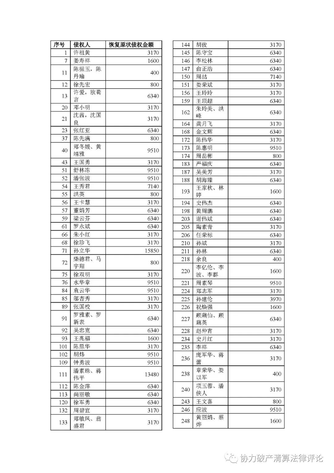 结合实地核查与统计,本次恢复原状的债权认定,共涉及债权人341户,认定债权总金额为人民币1,689,350元,债权性质为普通债权。