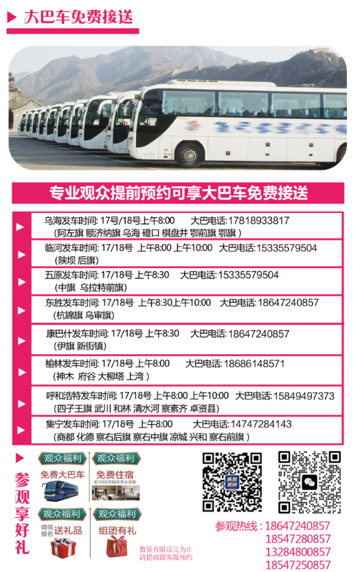 2.自主组团:包头市周边车程内4小时内,同一地点自主组团达40人,并确定为专业门店买家,联系组委会申请专属大巴车。