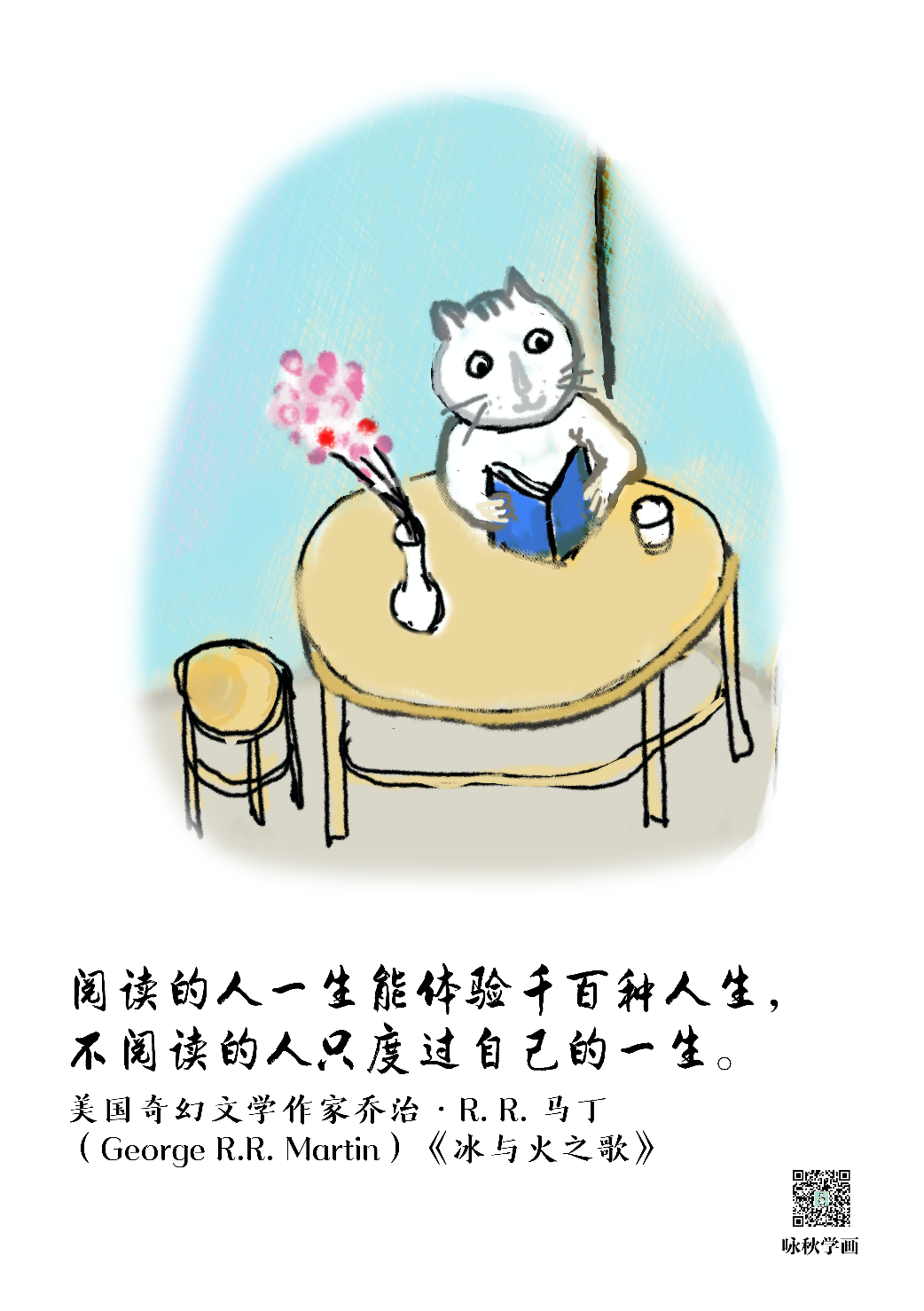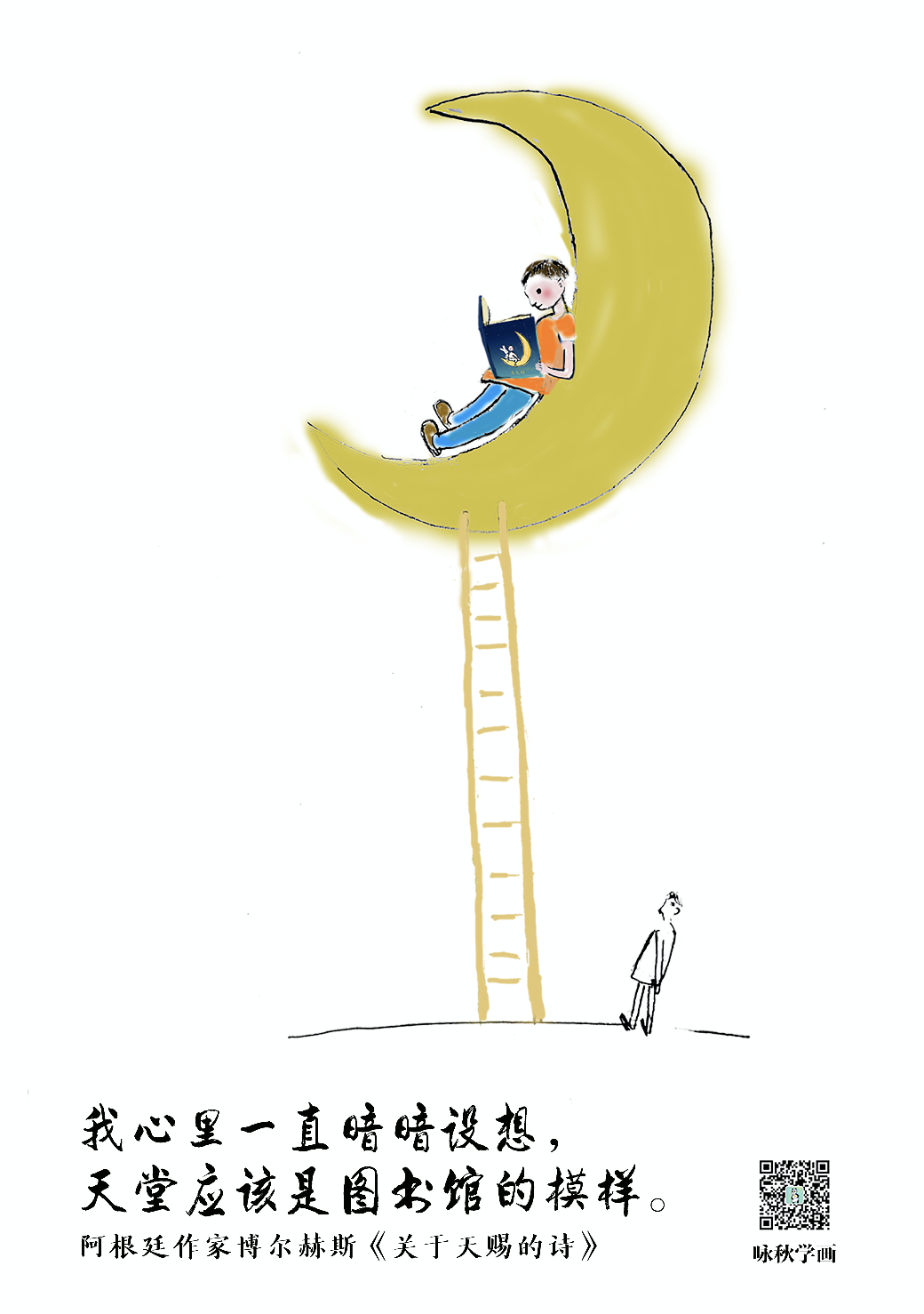 我希望大家从我的画中获得阅读的力量和励志的能量。我画得不好,也许它们最大的作用,除了阅读推广以外,就是励志:画成这样,也可以办展览或出版。我一直坚信阅读的力量——阅读让人们知道得更多,让人们学会独立思考,让生活更美好。我想用图画+名言这种有力量的方式来推广阅读。在阅读过很多他人的同类作品与大量的绘本之后,零基础的我画出了这些作品。我最想说的是“阅读为我赋能,一切皆有可能”。一个人如果能专注地用力在一些值得的事情上,我相信都有收获。我与王媛编的文创笔记本《爱上阅读主题手账》。这是一个文创笔记本,每年的爱上阅读效率笔记本都包括阅读的名言与中外阅读名画。多看这些阅读名画与阅读名言,你也可以创作出很多美好有创意的东西。这个手账型笔记本适合送给自己,作为图书馆礼物送给读者⭣⭣⭣
