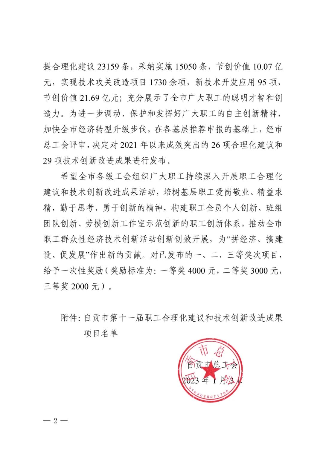 近日,自贡市总工会发布自贡市第十一届职工合理化建议和技术创新改进成果的通知。