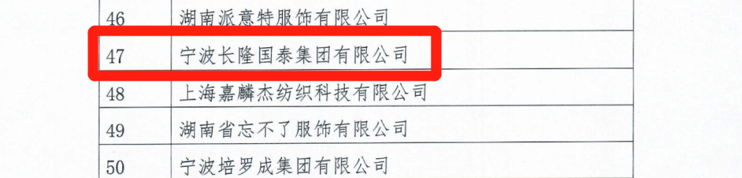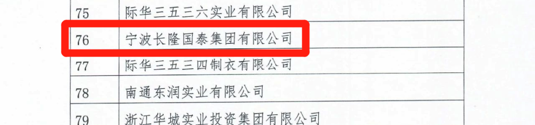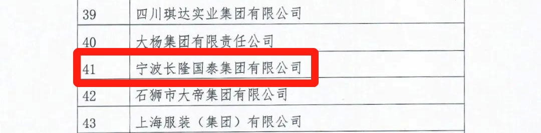 宁波市百精企业家俱乐部成员竺建江单位宁波长隆国泰集团有限公司荣获“2022年中国服装行业“营业收入”百强企业”、“利润总额”百强企业、“营业收入利润率”百强企业。