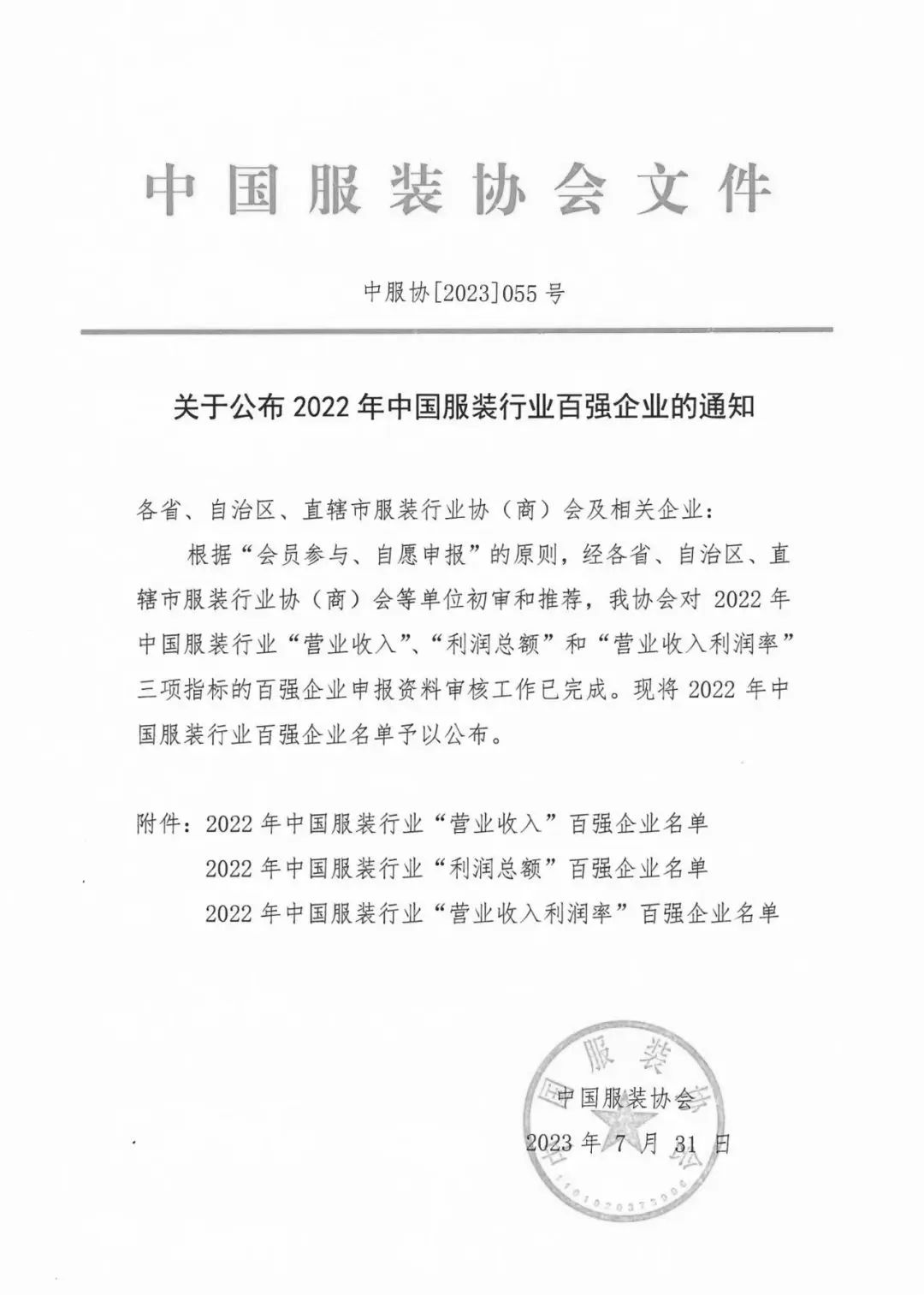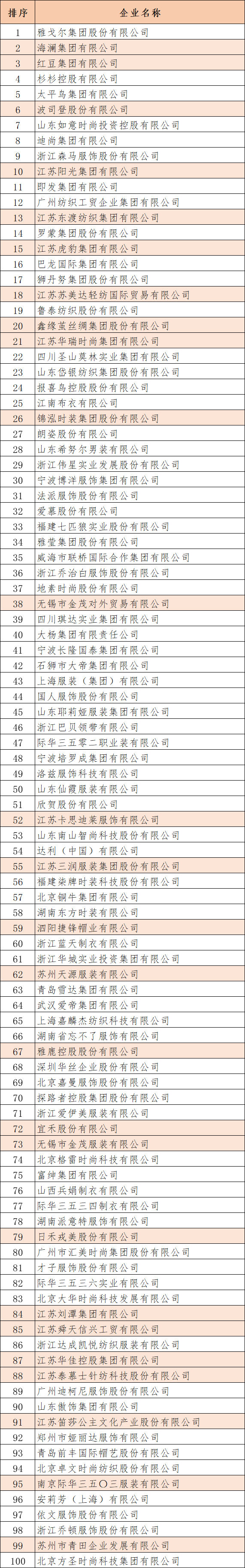 近日,中国服装协会正式发布了“2022年中国服装行业百强企业”名单,我市6家企业榜上有名。其中,“营业收入”百强企业6家;“利润总额”百强企业2家。海澜集团、红豆集团、阳光集团继续保持“营业收入”榜单前十。海澜集团、阳光集团进入“利润总额”榜单前十。