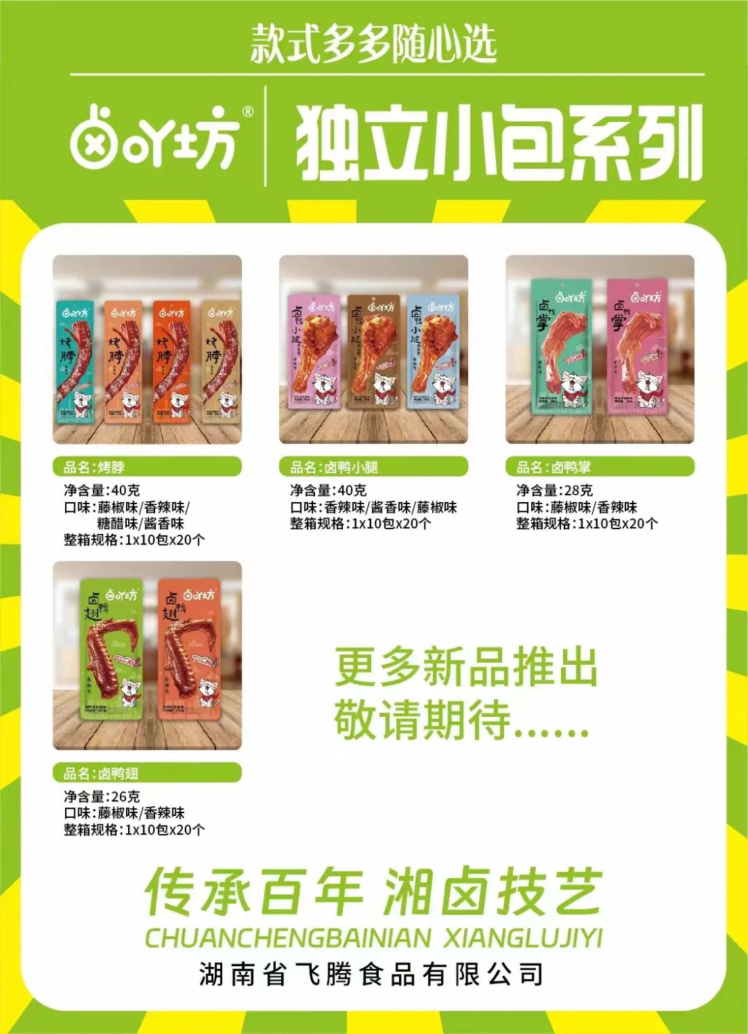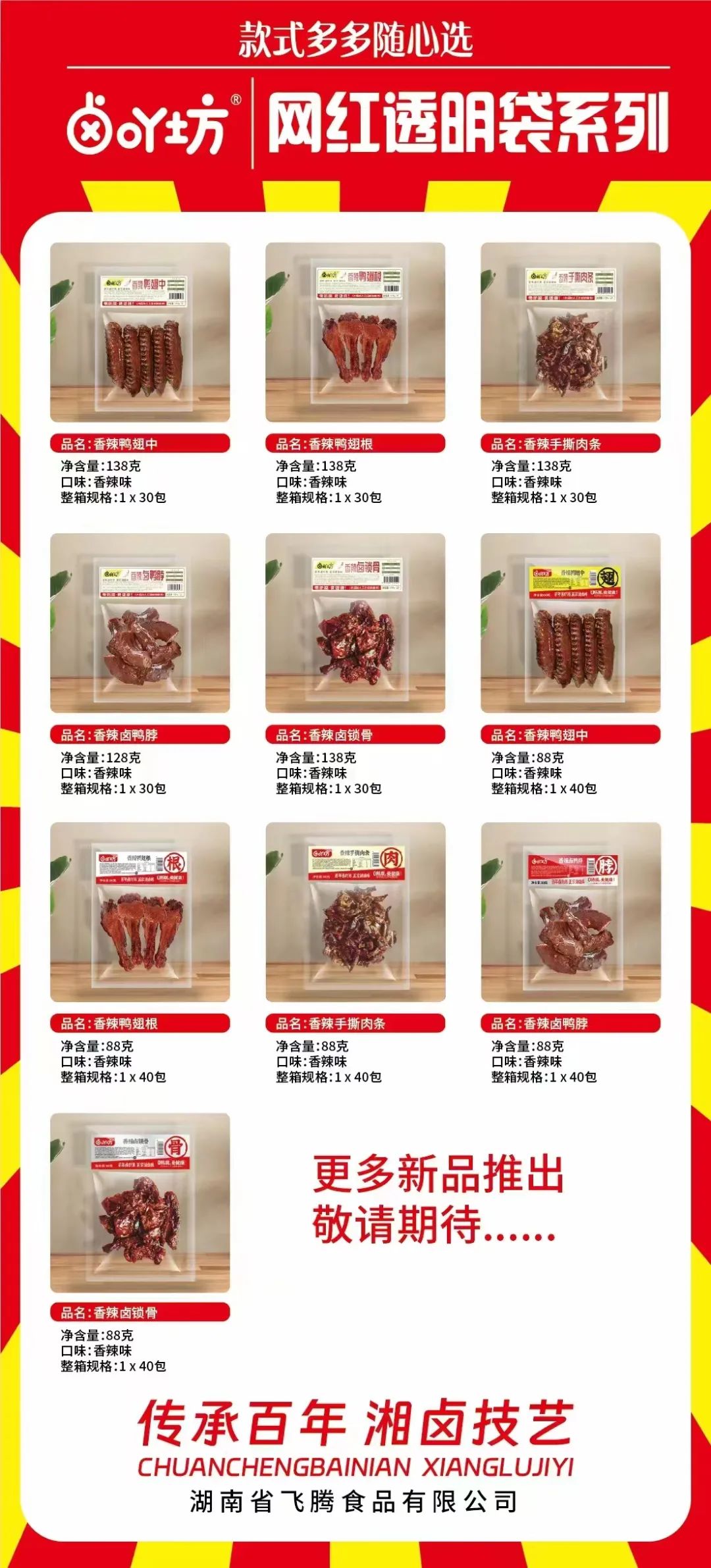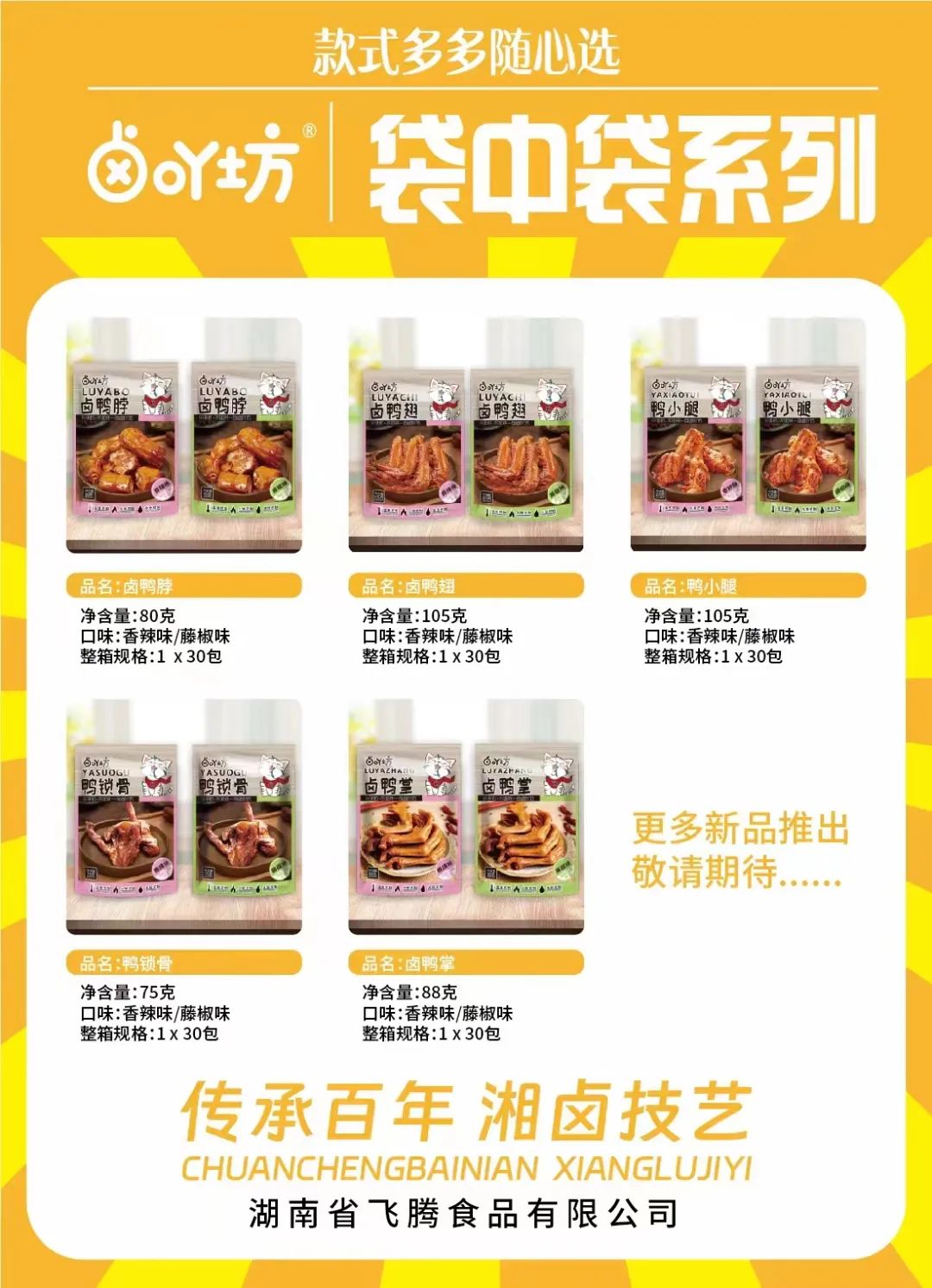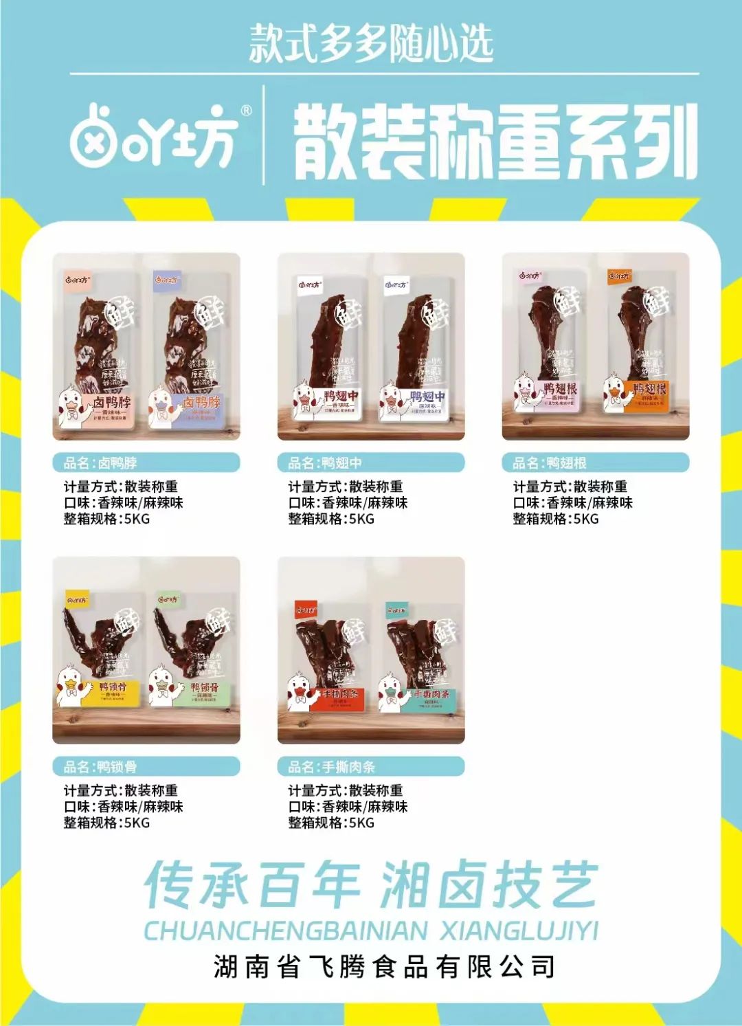 主营产品:高端散称系列:鸡爪、鸭掌、锁骨、翅中,鸭腿、鸭脖、鸡脖
