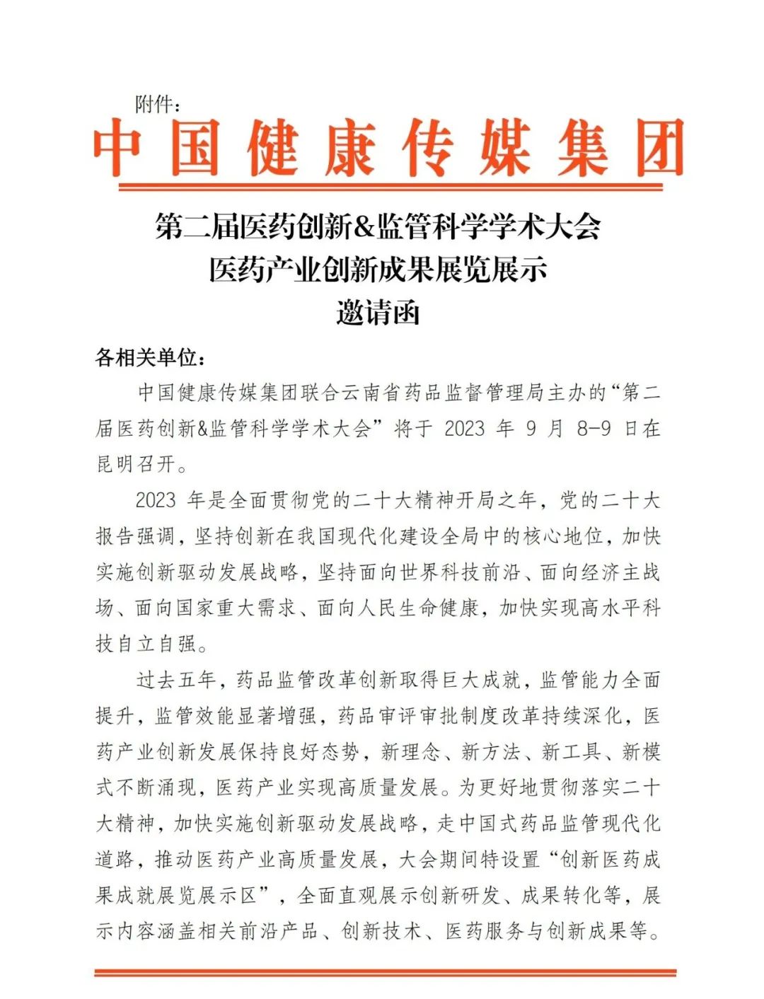 【邀请函】第二届医药创新&监管科学学术大会医药产业创新成果展览展示邀请函