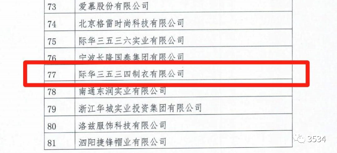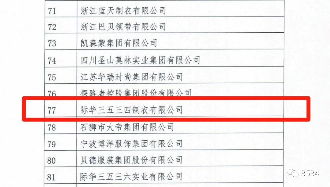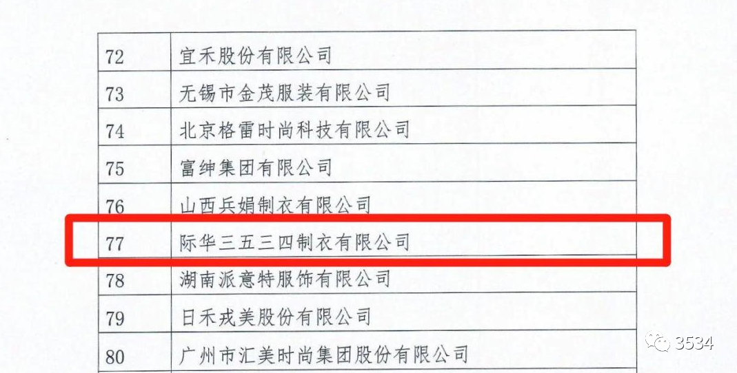 7月31日,中国服装协会正式发布“2022年服装行业百强企业”名单,分别对“营业收入”“利润总额”“营业收入利润率”三项指标进行排序,全国共有130家企业上榜,其中山西省占2家。际华3534公司再次入选“百强”榜单,分别位列“营业收入”第77名,“利润总额”第77名,“营业收入利润率”第77名。
