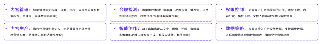 内容中台搭载专业级创作工具,助力企业实现从1-N的高效内容裂变。内置了数十款在线效率工具,集合在线设计编辑器、智能延展、批量抠图,PPT在线编辑工具,让AI智能化创意生产不只停留在概念层面,而是真正辅助企业能够实现解放设计师创意,提升品牌内容的质量;同时把创意价值最大化,提升内容达到亿级数量。