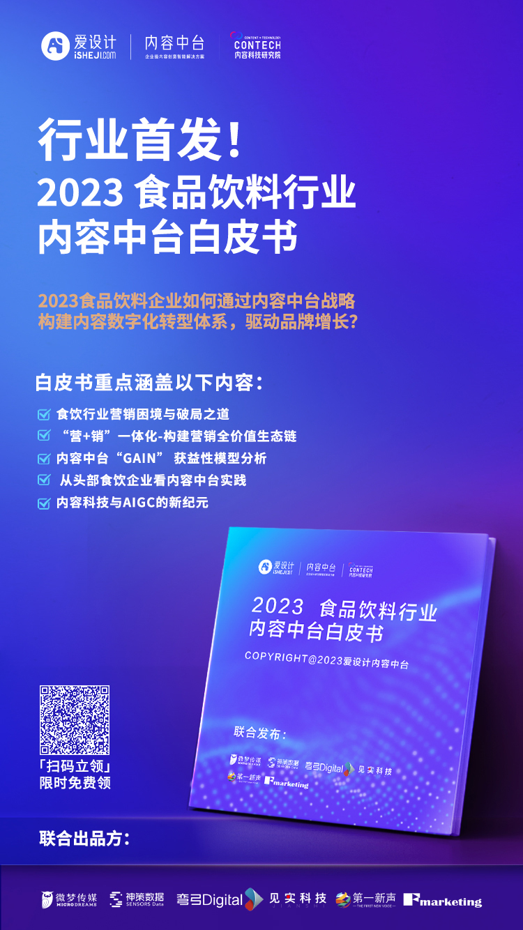 爱设计内容中台,期待为大家揭开优秀营销案例中值得探讨的内容营销谜题。以下行业洞察均来自于《2023食品饮料行业内容中台白皮书》(文末扫码免费领取完整版白皮书)