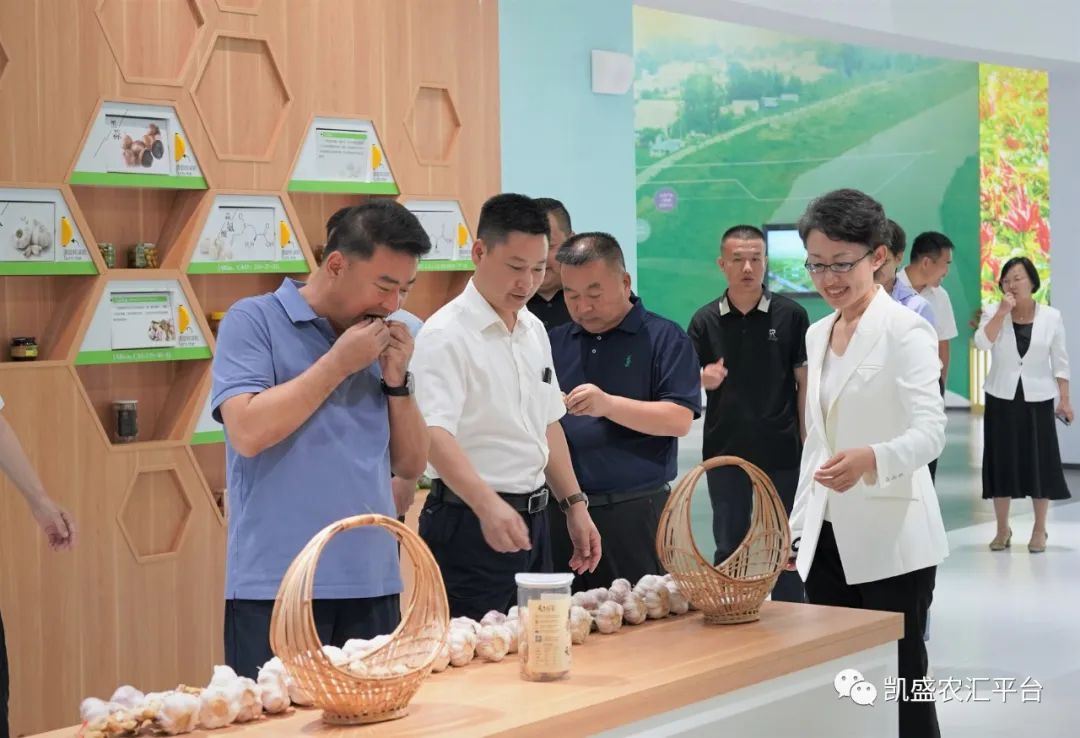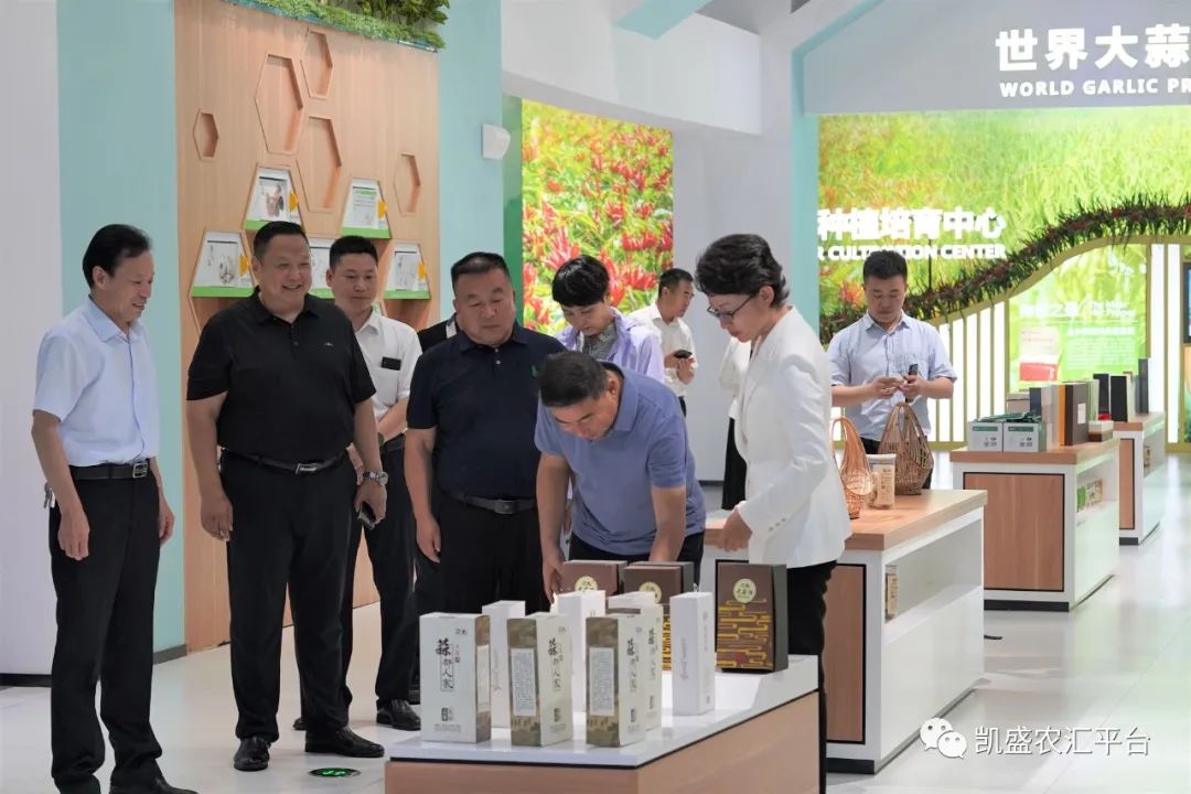 考察组一行先后参观了凯盛数字农业展示馆、食品安全检验检疫中心、电子结算金融服务中心、监控调度中心、大数据服务中心、党建室、“和为贵”社会治理服务中心、农产品拍卖大厅,详细听取了集团建设、运营、规划等方面的情况,并对大蒜和辣椒种植标准化、产品加工精深化、产业链条延伸、市场高端化等方面做了进一步地了解。