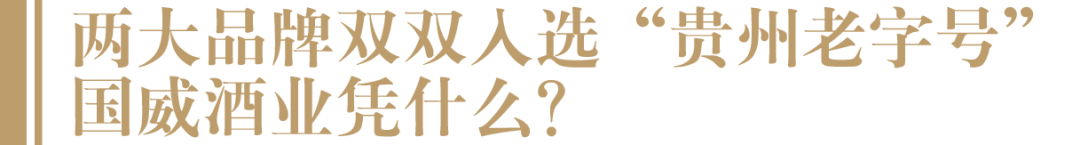 如今,这两大品牌双双入选“贵州老字号”,预示着国威酒业“双品牌”战略的阶段性胜利。而“贵州老字号”这一“金招牌”,则将为国威酒业“双品牌”战略的发展进行全方位赋能,助力其抵达新的高度。