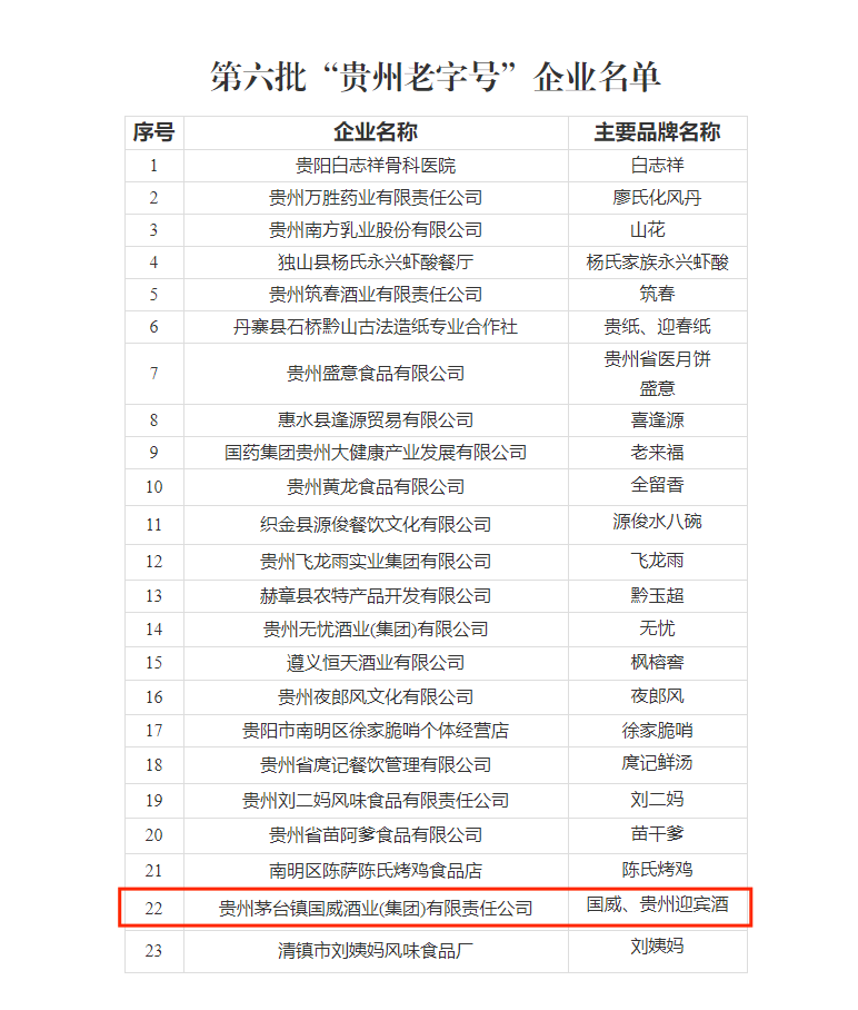 只有同时满足以上所有条件,才有入选“贵州老字号”的资格,最终符合要求的品牌还要经过层层选拔、优中择优,方能角逐出最终的“贵州老字号”。此次国威、贵州迎宾酒两大品牌同时入选“贵州老字号”更显难能可贵,足见两大品牌的含金量,更足见国威酒业过硬的企业实力。