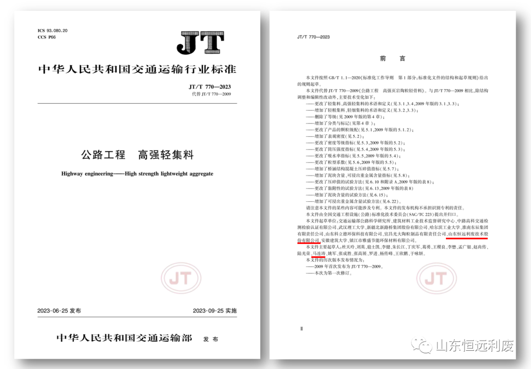 日前,交通运输部发布了《城市轨道交通运力负荷评估规范》等30项交通运输行业标准,我公司参与修订的JT/T 770-2023《公路工程 高强轻集料》亦在之列。
