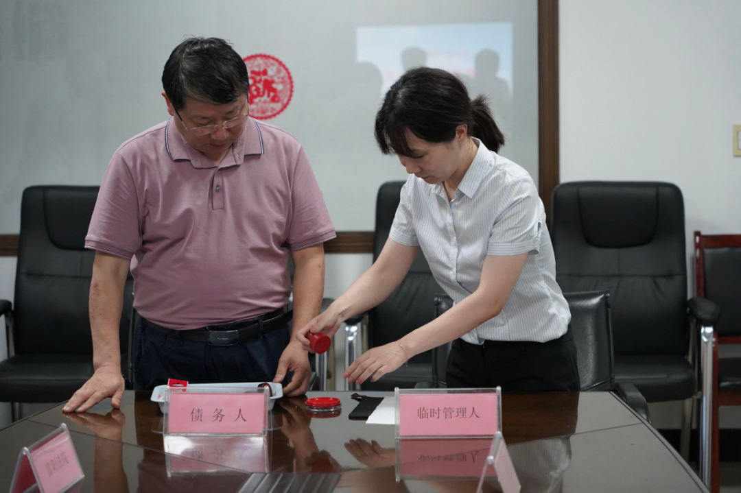 最后由临时管理人与债务人相关人员展开具体交接工作。此次接管的材料包括债务人的印章、证照、合同协议资料等,同时就债务人的具体情况对债务人有关人员进行询问,制作询问笔录,考虑到预重整阶段企业仍继续经营,就财务资料、实物资产等指定责任人员进行专员保管。