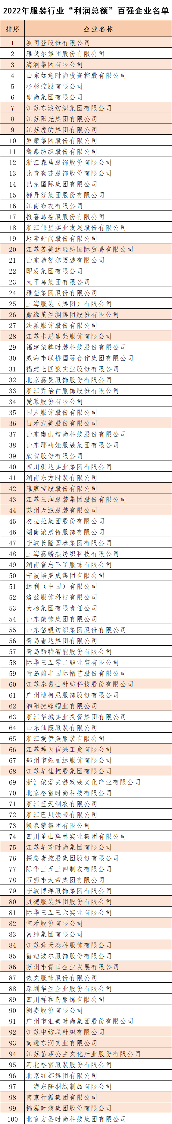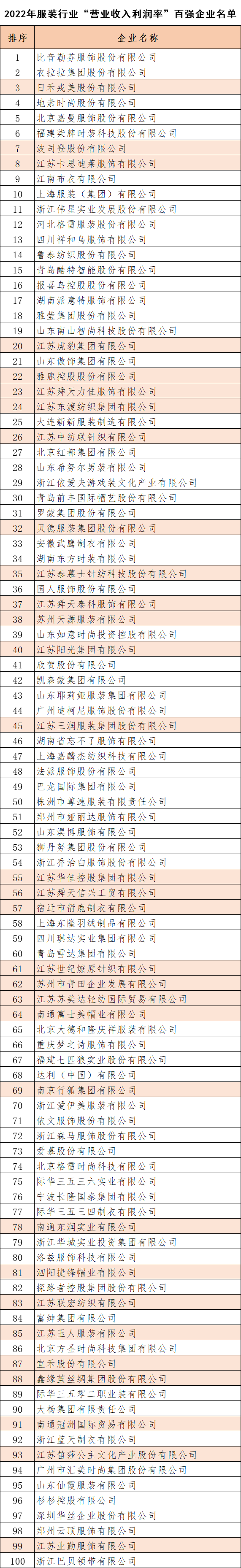 喜讯 ▏江苏省39家企业上榜“2022年中国服装行业百强企业”名单