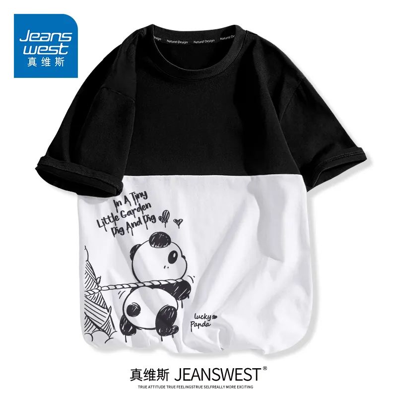 (19.9元)真维斯短袖t恤美式穿搭潮真维斯男款t恤短袖夏季简约纯色百搭男士美式潮牌宽松拼色半袖棉C。