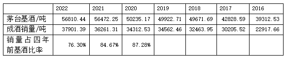 注:(1)为保证公司可持续发展,每年需留存一定量的基酒,按生产工艺,茅台酒从生产到出厂至少需要五年。(2)茅台酒是由不同年份、不同轮次、不同浓度的基酒相互勾兑而成,是技术和 艺术的完美结合,因此某一年份的基酒可能在未来数年都会作为产品出现。(3)公司坚持质量是 生命之魂,坚持五匠质量观,坚持“崇本守道,坚守工艺,贮足陈酿,不卖新酒”,茅台酒的生产 属于自然固态发酵,传统工艺酿造,成品率具有一定波动性。(4)基于上述原因,茅台酒基酒产 销率不能精准计算。系列酒的产品形成过程近似于茅台酒。
