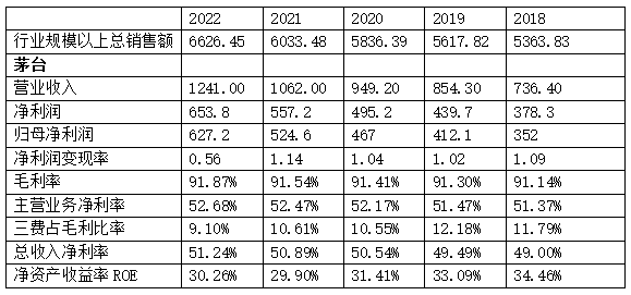 ①2022年茅台酒的营业成本≈62.66亿,占茅台酒营业收入约5.81%。
