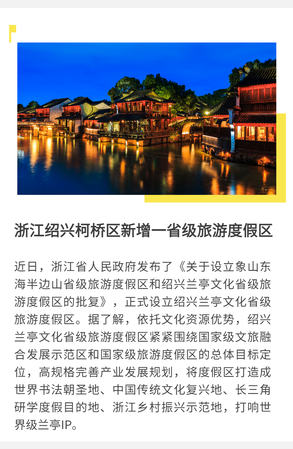 酒旅快讯|万达集团将旗下万达文化集团更名为万达文旅集团;浙江绍兴柯桥区新增一省级旅游度假区