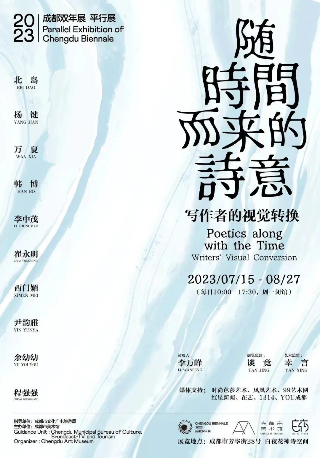 北岛、杨键、万夏、韩博、翟永明、西门媚、余幼幼、李中茂、程强强、尹韵雅。