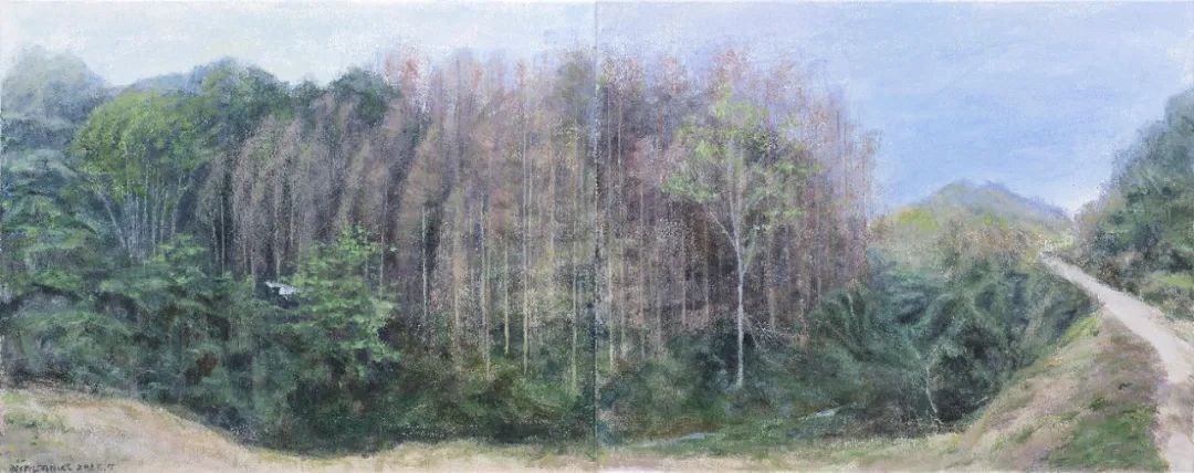 《春山隐者》西门媚 双联画 布面丙烯 61X77X2