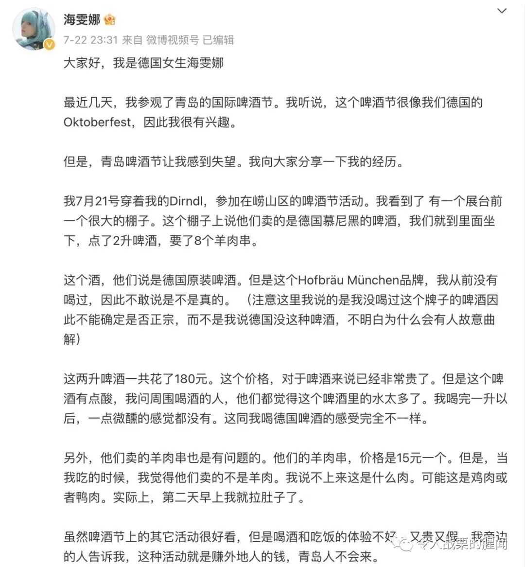 同时有很多营销号在攻击海雯娜,可是,人家是德国女生,她不吃这一套啊,直接给青岛花园大酒店来了个普法,教育他们什么是消费者的权利。