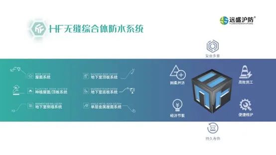 “赋能建筑、岁月值守”就是远盛沪防不变的企业使命,为了完善建筑全生命周期的防护,远盛沪防三十年磨一剑,推出了HF无缝综合体防水系统。该防水系统是以最大程度地降低渗漏水概率、提高建筑物使用寿命、维护结构功能为基本出发点而开发设计的,适用于各类商用、民用、公共建构筑物工程的一体化防水解决方案要求。
