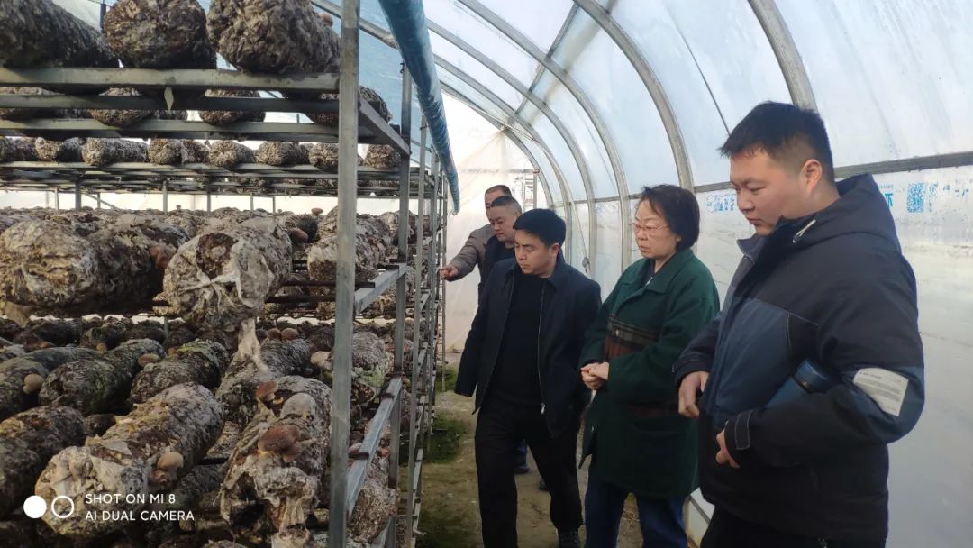 ▲县农副产品加工发展服务中心主任谢建鹏陪同中国农科院张金霞教授考察我县香菇发展情况