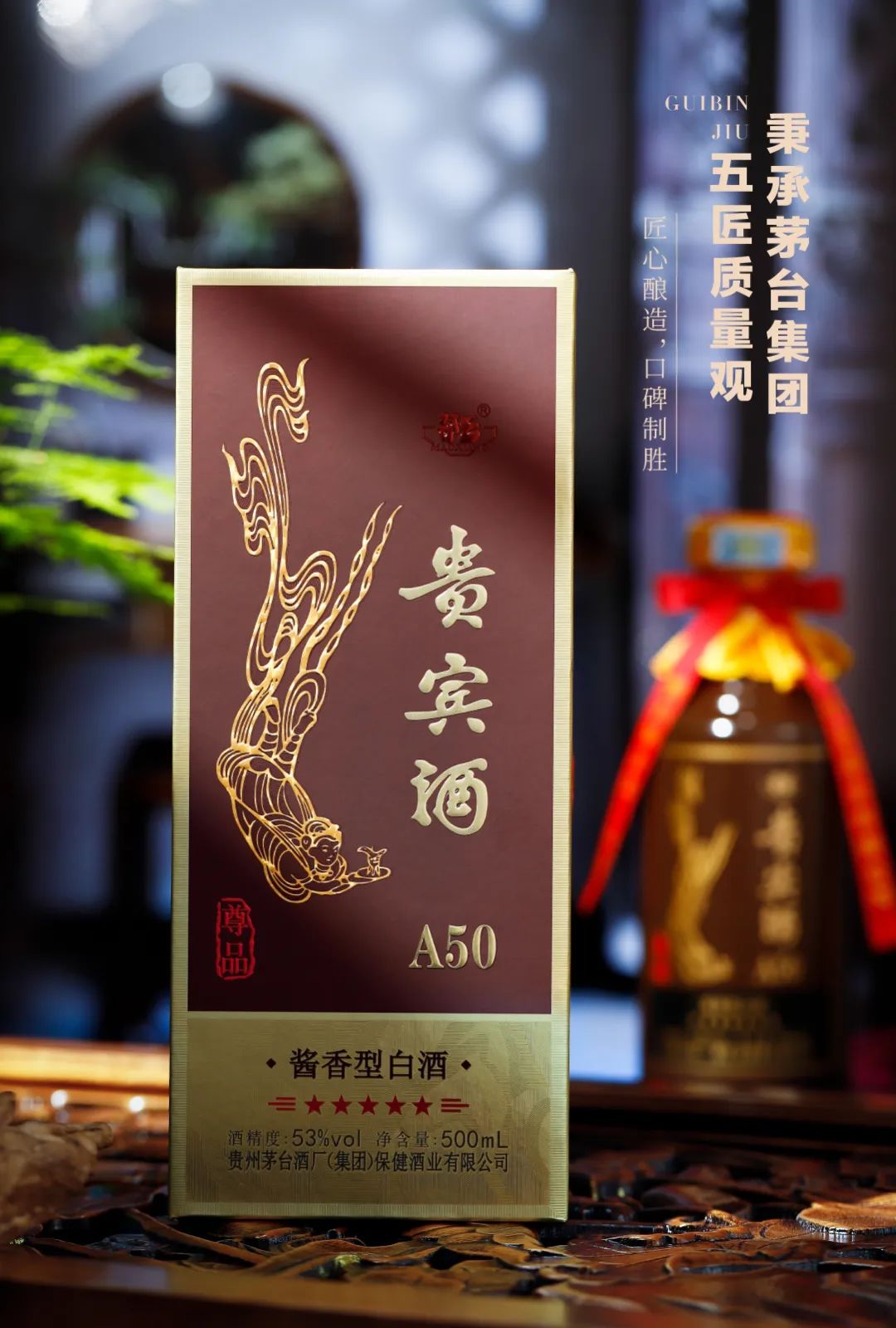 茅台贵宾酒A50尊品是由茅台集团麾下的保健酒业有限公司生产的一款酱香型白酒。