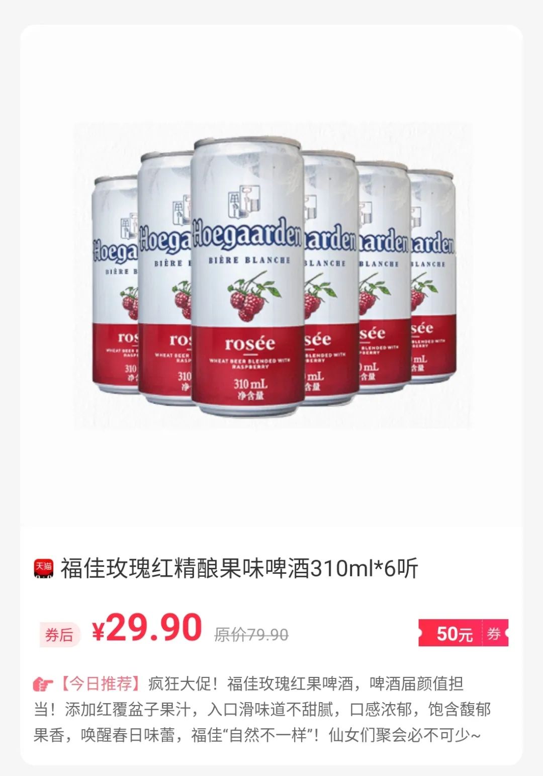 疯狂大促!福佳玫瑰红果啤酒,啤酒届颜值担当!添加红覆盆子果汁,入口滑味道不甜腻,口感浓郁,饱含馥郁果香,唤醒春日味蕾,福佳“自然不一样”!仙女们聚会必不可少~
