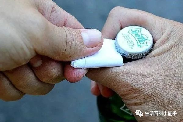 接下来,将纸从中间对折一次,这样就形成了一个坚硬的角。然后,我们只需要用手握住瓶口下方的位置,并将纸的尖角对准瓶盖,用力一撬,这样瓶盖就轻松被打开了。