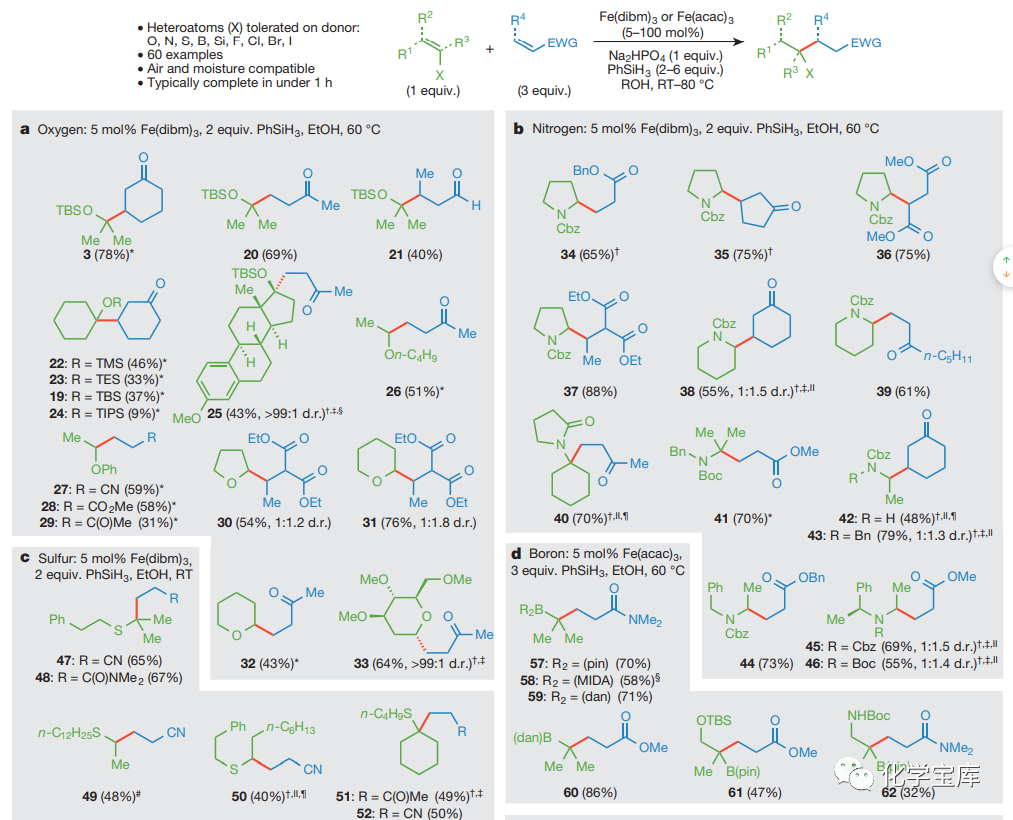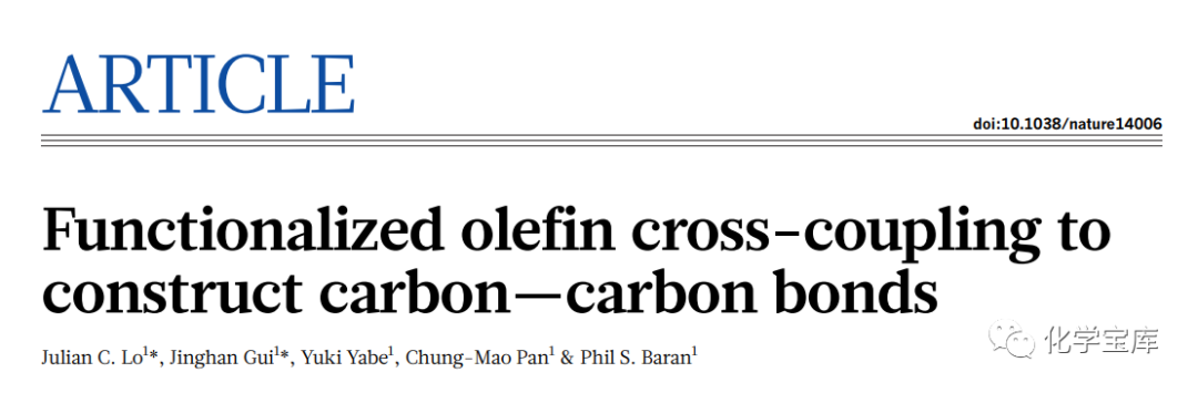 美国斯克里普斯研究所(TSRI)年轻的有机化学大牛Phil. S.Baran课题组发明了一种让复杂有机分子耦合的新方法,并合成了60多种新的化合物,其中90%为新化学实体(NCE)——这些新化学实体在以前看来不是缺乏合成的现实条件就是根本不可能合成。这一关于羧基官能团烯烃交叉偶联的研究成果发表《自然》杂志上(题名:Functionalized olefin cross-coupling to construct carbon–carbon bonds, Nature, 516, 343-348, DOI: 10.1038/nature14006)。为了证明该反应的实用性,作者大胆的尝试将有机溶剂换成日常的酒类饮品。以乙醇为对照组A,B组为伏特加,C组为龙舌兰, D组为施格兰金酒,E组为威士忌酒,F组为巨石IPA,G组为夏敦埃酒和H组为蒙特思梅洛红。事实上,从TLC结果看来,C组为龙舌兰,F组为巨石IPA和H组为蒙特思梅洛红相对于其他组来说得到的产物比例较少,效果较差。而D组为施格兰金酒,E组为威士忌酒做为反应溶剂来说的话,得到较多的C-C偶联产物,小编猜测威士忌酒和施格兰金酒中酒精含量较多,纯度较高。运用新技术,科研人员可以使两种烯烃耦合并在其碳原子主链上生成新的化学键。据物理学家组织网,新方法被称为“温和法”,意思是它不需要极端的温度和压力,也不需要刺激性强的化学物质。因此,使用其他交叉偶联方法会被破坏的官能团,在这种新方法中其化学性质可以“完好无损”。同时,新方法对实验设备的要求也很简单,只需要使用普通的铁催化剂并以市面上常见的硅烷和乙醇作为溶剂,而且实验可以在开口的烧瓶中进行,也就是说,不需要排除空气和水分。碳-碳偶联方法在有机化合物合成中具有重要地位,不过迄今这种方法一直被其局限性所困扰:如果其中一种原料化合物包含的官能团附着于其主体结构上,实验就经常以失败告终;而且在“杂原子”——非碳原子例如氮原子、氧原子和碘原子等——出现的情况下,这种方法经常不太灵验,尽管这些“杂原子”在化学合成中十分重要。这一新发现源于斯克里普斯研究所关于人工合成传统中药中天然化合物的科研项目。在该项目中,科研团队开发了一种在实验室中制造目标分子的技术。之后他们意识到,可以将新技术用于两种较为简单的烯烃的耦合。下一步科研人员将对技术进行改进以用于附着在“杂原子”上的更为复杂的烯烃偶联。