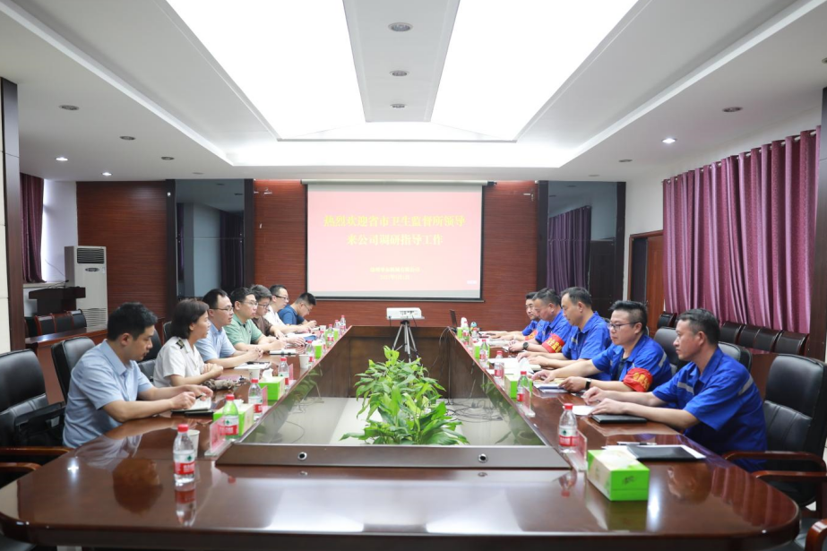 近日,江苏省卫生监督所副所长李勇带队到华东机械公司就卫生监督业务工作开展调研活动。公司党委副书记、总经理孙强陪同调研。