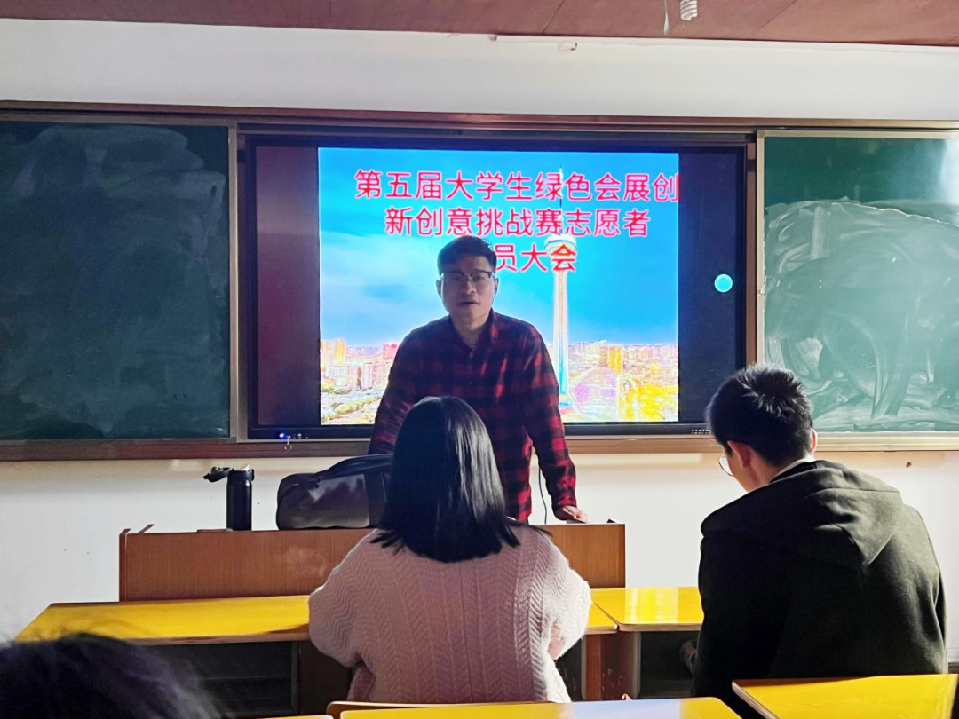 为保障第五届大学生绿色会展创新创意挑战赛赛事期间各项工作的有序开展,2022年11月23日中午,旅游与经济管理学院于青山湖校区艺术楼207教室召开第五届绿色会展大赛志愿者动员大会。会议由辅导员黄聪老师主持,杨丹老师及全体志愿者同学参加了本次动员大会。