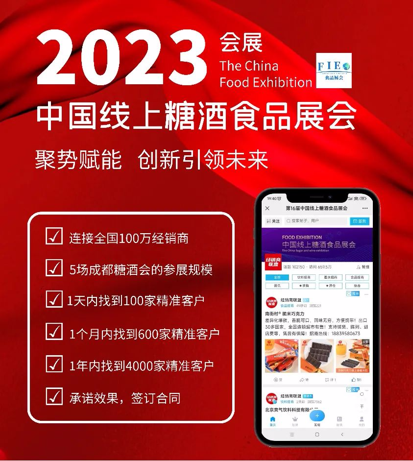 FIE线上糖酒会: 选品看这里,让您不用东奔西跑,就能挑选到满意的产品。「FIE线上糖酒会」连接全国100万经销商,可帮助厂家3天内找到600家经销商,保障招商效果,要想火,就来「FIE线上糖酒会」。