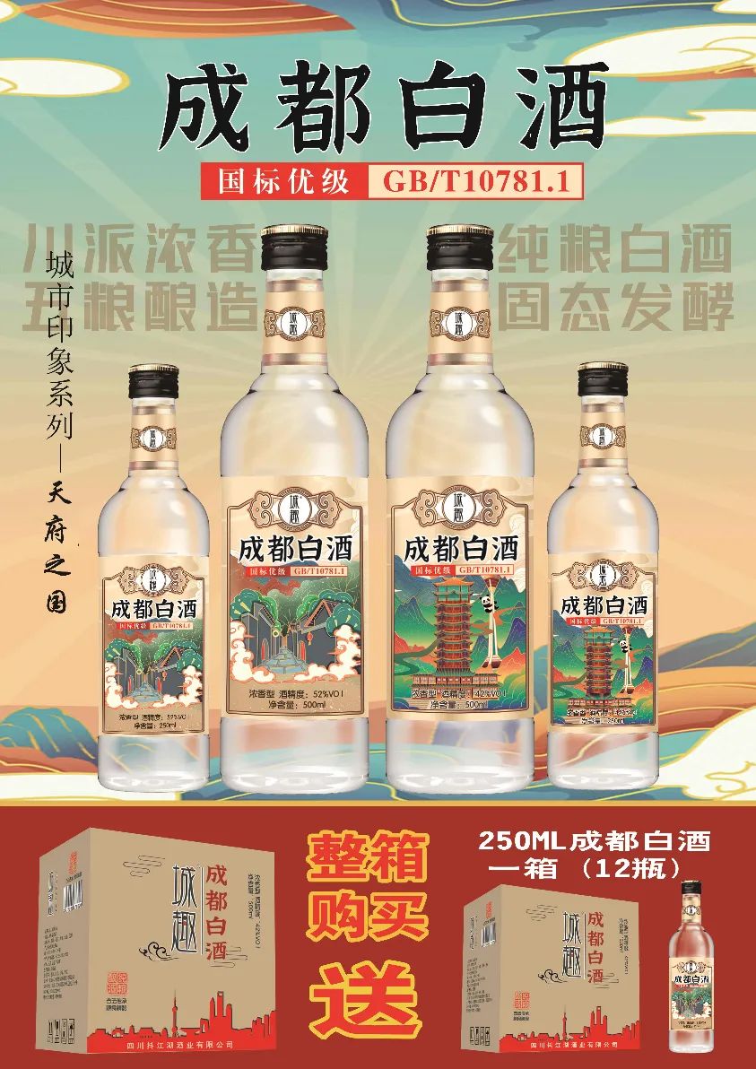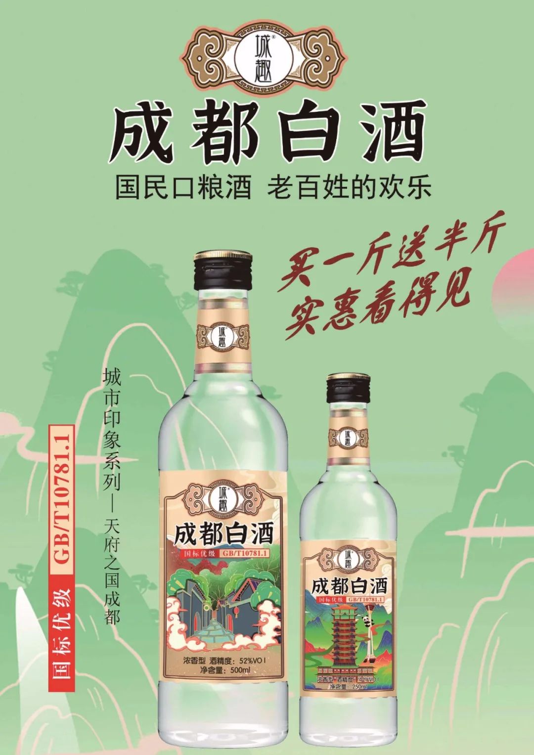 成都白酒/川派浓香,五粮酿造,固态发酵,国标优级酒,绵柔经典,入口柔顺,买一斤送半斤!城趣-中国城市文化酒系列!