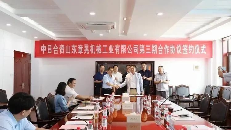 8月4日,中日合资山东章晃机械工业有限公司第三期合作协议签约仪式举行,日本大晃机械工业株式会社山根雅和专务,区领导边祥为、黄凯东,山东章鼓、山东章晃负责人参加签约。