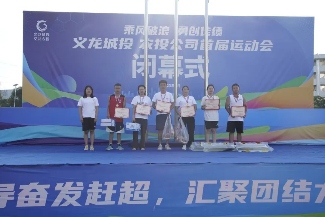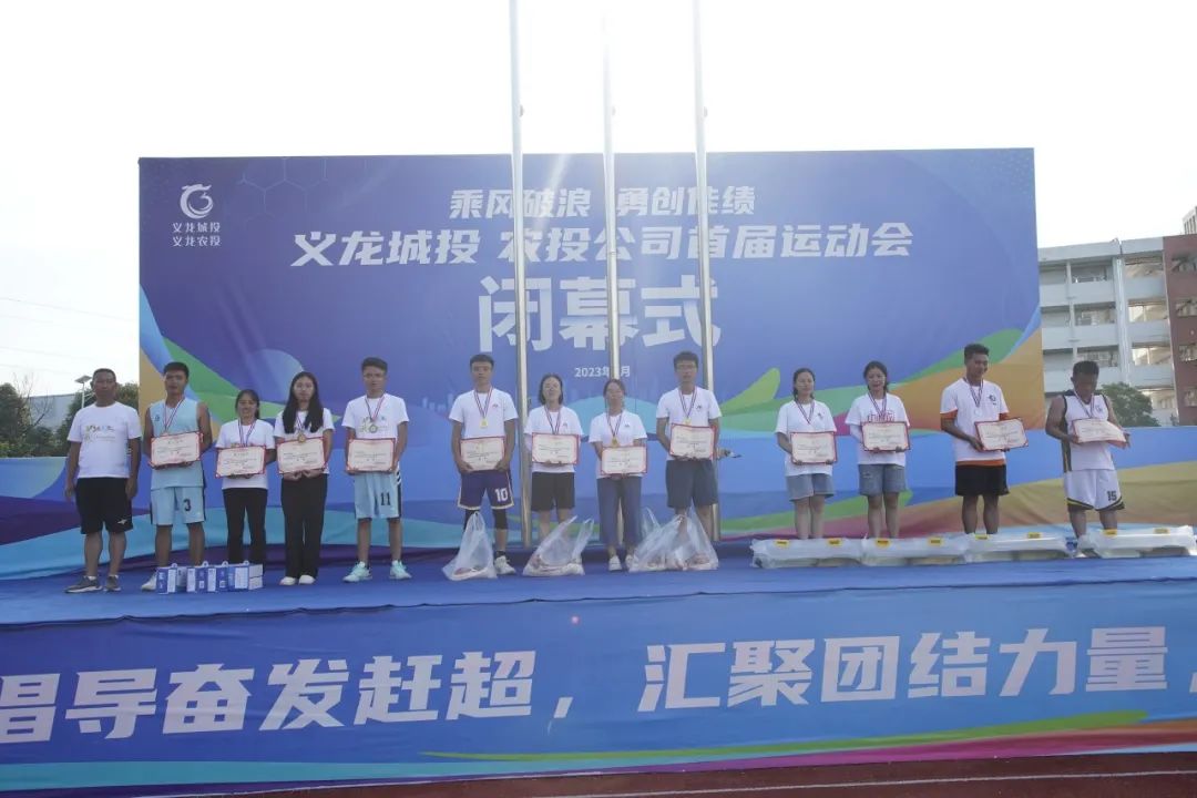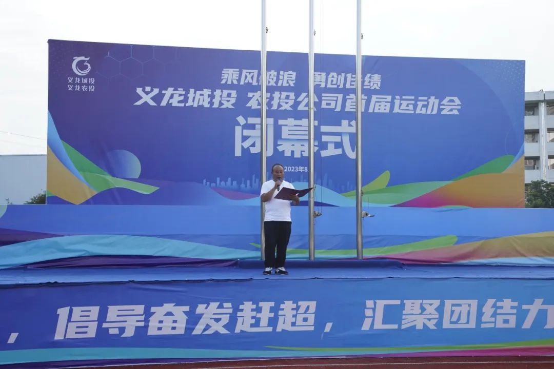 2023年8月5日下午16:30,以“乘风破浪,勇创佳绩”为主题的义龙城投、农投公司首届运动会闭幕式在义龙实验学校运动场举行。