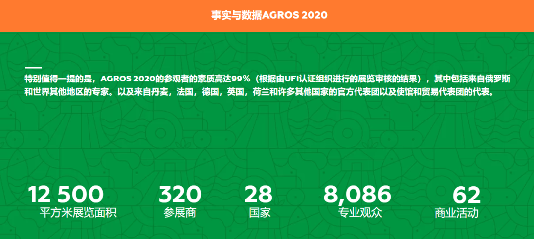 2024年俄罗斯莫斯科畜牧养殖展览会(AGROS),展会时间:2024年01月24日~01月26日,展会地点:俄罗斯-莫斯科-Crocus-Expo IEC, Krasnogorsk, 65-66 km Moscow Ring Road ,Russia-莫斯科克洛库斯国际会展中心,主办方:德国农业协会DLG,举办周期:一年一届,展会面积:12270平米,参展观众:20000人,参展商数量及参展品牌达到365家。