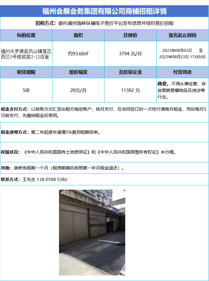 罗源县凤山镇莲花西区5号楼底层3-13店面