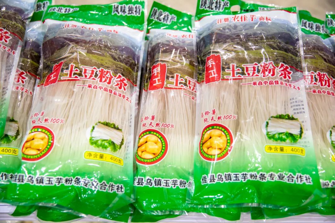 红枣文化是佳县特有的农耕文化,作为中国红枣名县、全国绿色有机双认证红枣生产基地,这里的红枣久负盛名,以个大、核小、肉厚、色鲜、油性大等特点而闻名于世。“精选佳枣 营养极品”,颗颗饱满,开袋即能闻到清新的枣香。咬一口,甜香软糯,令人回味无穷。土豆粉条,是佳县人舌尖上的美味,承载着或为家乡味道、或为美食体验的情感记忆。由佳县乌镇玉芋粉条专业合作社带来的手工土豆粉条,色纯味正、晶莹剔透、洁白如玉,堪称“遗落在高原上的珍品”,经过岁月的洗礼,却始终保持着匠心和品质,入口爽滑、口感劲道。