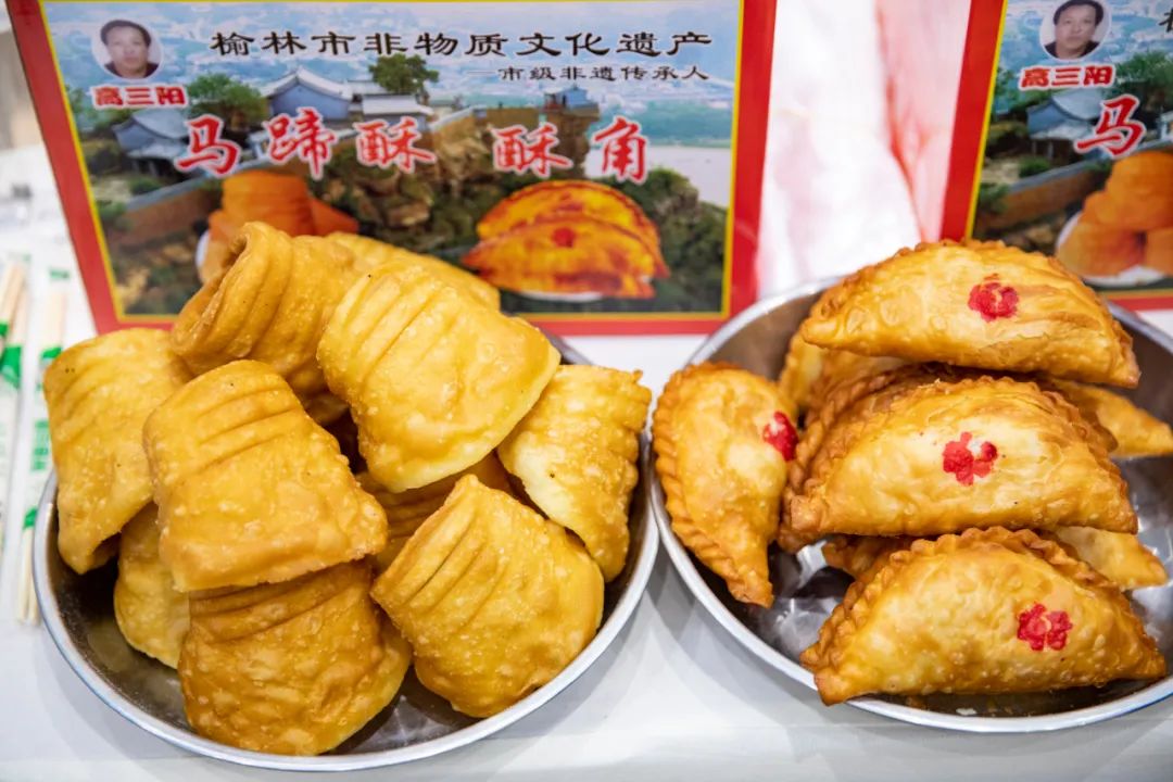 马蹄酥,作为佳县独树一帜的传统美食,因形似马蹄而得名。黄灿灿的外观令人垂涎欲滴,咬一口外脆里酥,再一咬香味扑鼻,一嚼甜味饶舌,只觉又香又甜、美味爽口。吃一口马蹄酥,一种甜蜜的幸福滋味涌入心扉,故而这一美食又有着“蜜窝”“蜜碗”的美称。长得像金元宝一样的酥角,向来出现在喜庆热闹的节日和场合中……作为佳县有名的传统风味食品,酥角(亦称“酥饺”)吃起来甜美可口、清香酥脆,吃完后齿颊留香。不仅颇受人们喜爱,也被作为商品销售和礼品赠送宾客,更是佳县人心中“年和家的味道”。