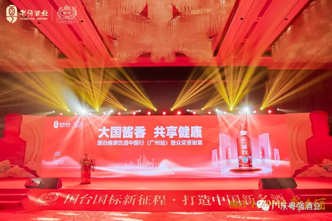 2023年8月2日,由广东粤强酒业有限公司主办的国台健康饮酒中国行(广州)暨众奖答谢宴在广州保利洲际酒店举行,来自广州区域400多名国台经销商代表欢聚一堂,共品美酒,共叙友谊,共商合作。莅临本次活动的领导嘉宾主要有:广东粤强酒业董事长王富强、广东省酒类行业协会会长彭洪、贵州国台酒业销售有限公司总经理助理,华南分公司总经理戚马带、贵州国台酒业高端酒广东分公司总经理罗英藤、广东粤强酒业总经理王双双。