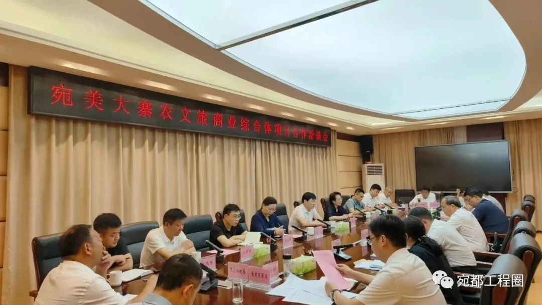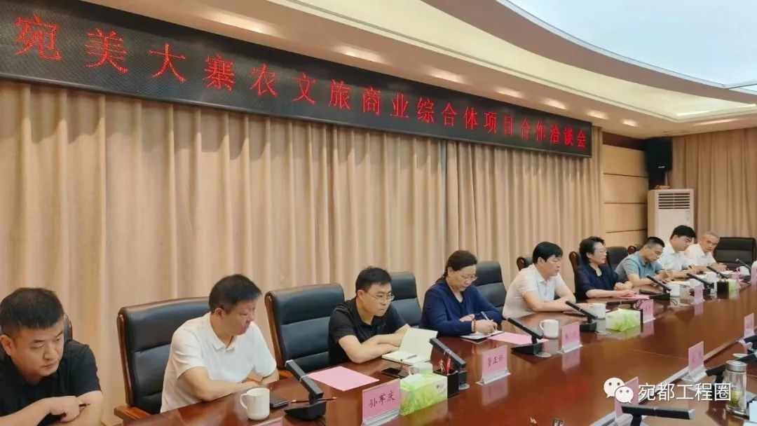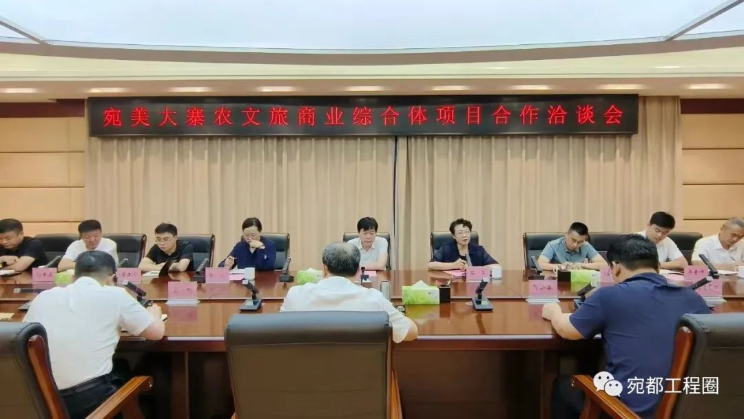 2023年8月2日上午,卧龙区举行宛美大寨农文旅商业综合体项目合作洽谈会,南阳文旅体投资集团董事长刘志华,区委书记吕志刚,河南黄河文投集团项目总经理、河南愚公餐饮文化管理有限公司董事长苏萍等参加。