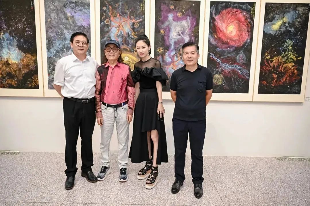 左起:中国美术家协会副主席徐里、著名画家石齐、艺术家刘盈希 中国电影出版社有限公司董事长朱虹子