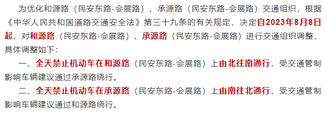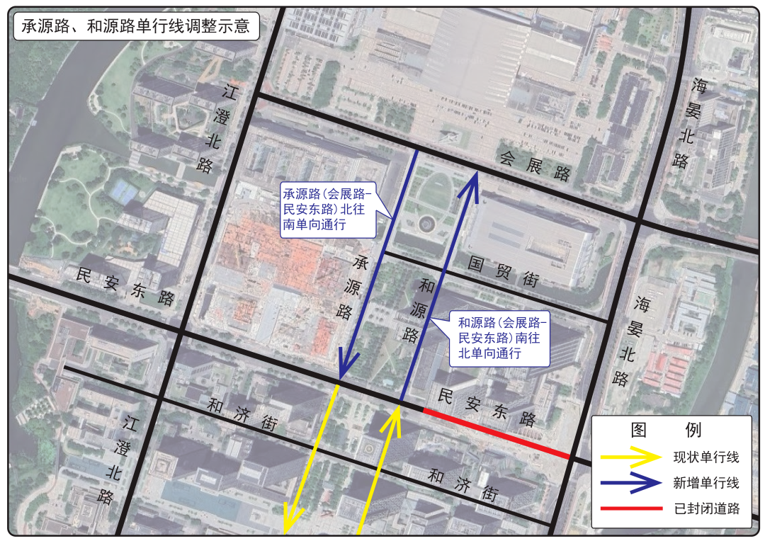 8月8日起,和源路(民安东路-会展路)、承源路(民安东路-会展路)通行有调整